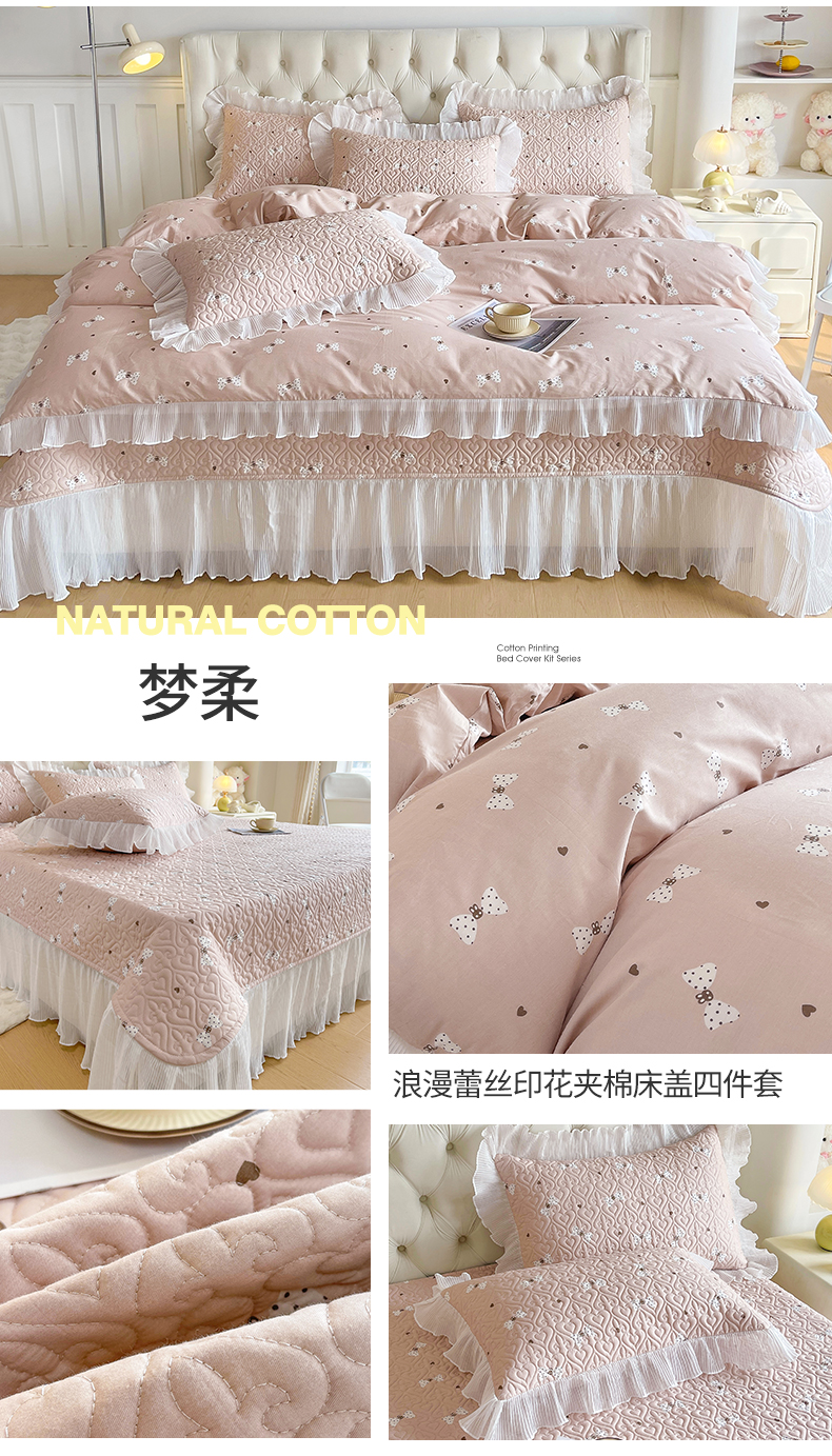 宜凡家纺2025新款雪纺花边印花夹棉床盖三件套四件套 梦柔