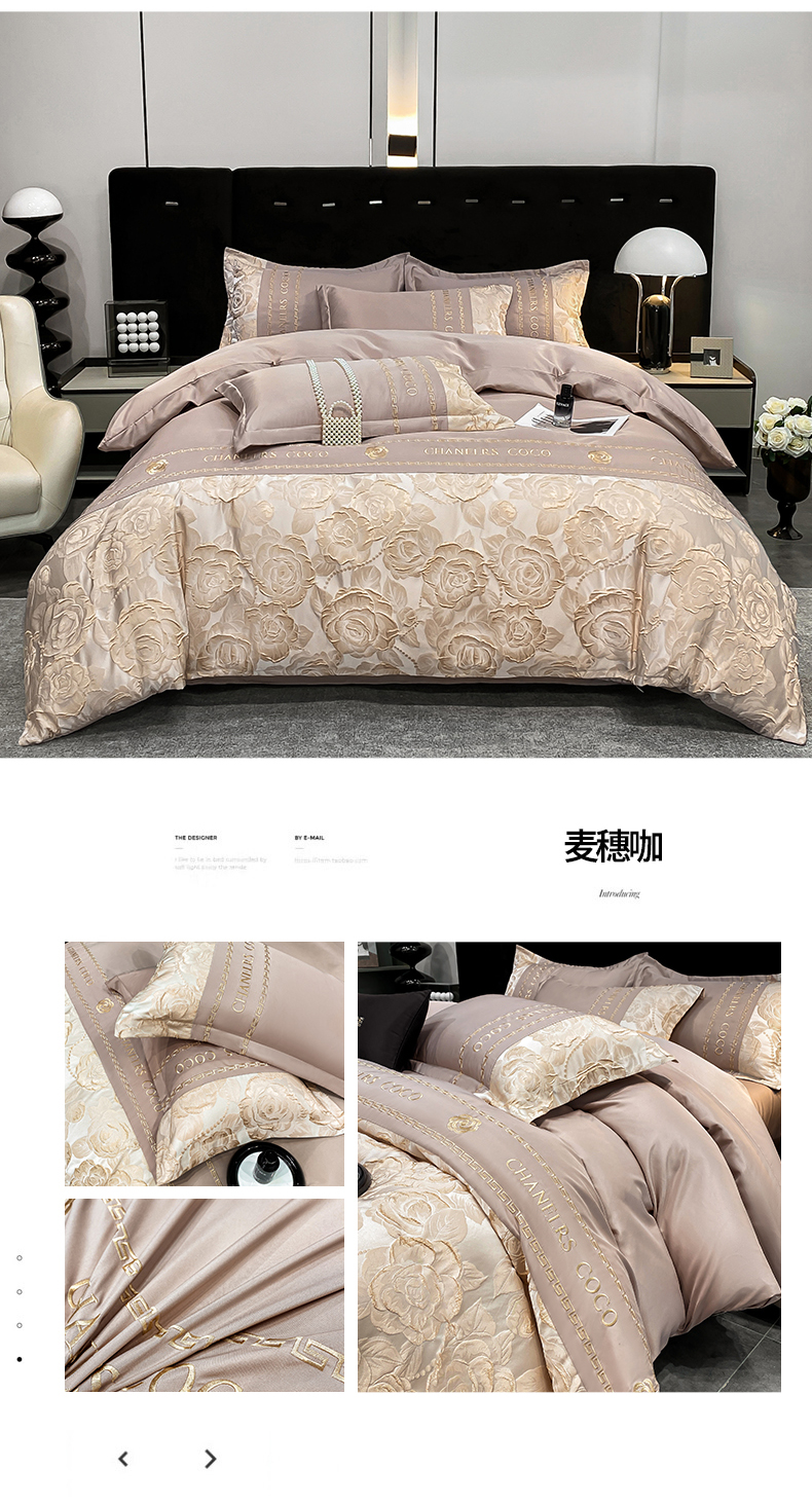 当前位置: 91家纺网 > 商品网购 > 床品套件 > 四件套 > 提花四件套 > 富宁2025新款浮雕金丝提花刺绣四件套-恋花 麦穗咖