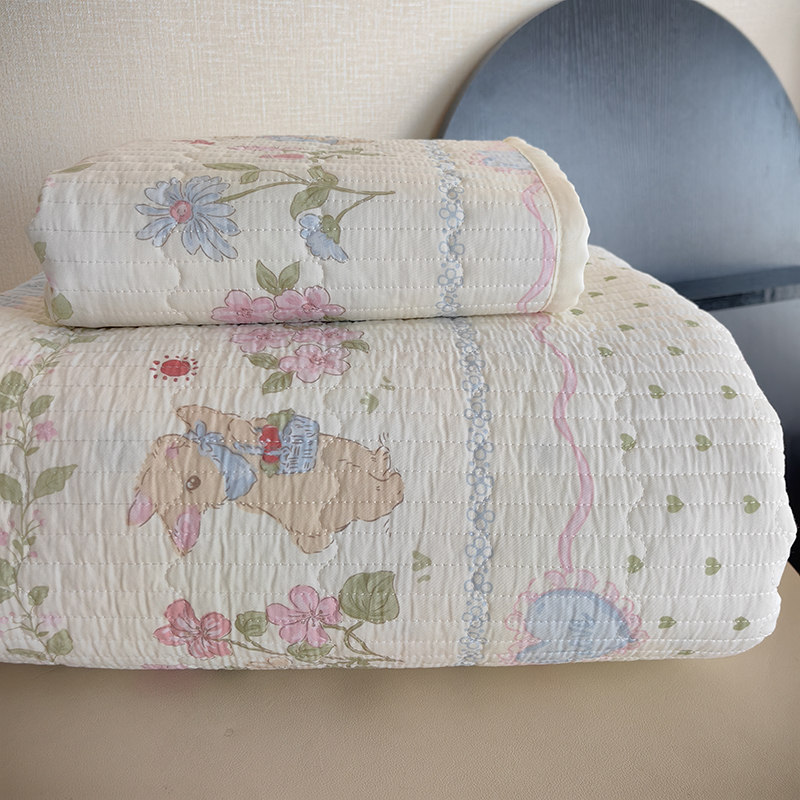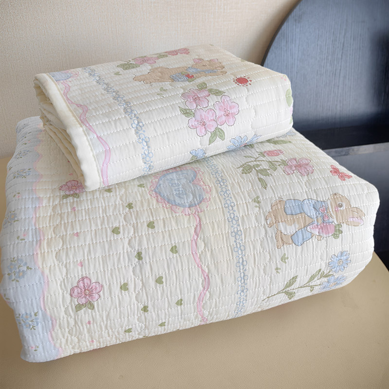 (总)舒居家纺 2025新款双面全棉酵素砂洗床盖( 风格一),爱心木马,比利小熊,花季少女,花开无声--咖,花睿--青草绿,洛琳-粉,迷彩花兔,俏皮狗,兔兔乐园,小汽车,樱桃格子