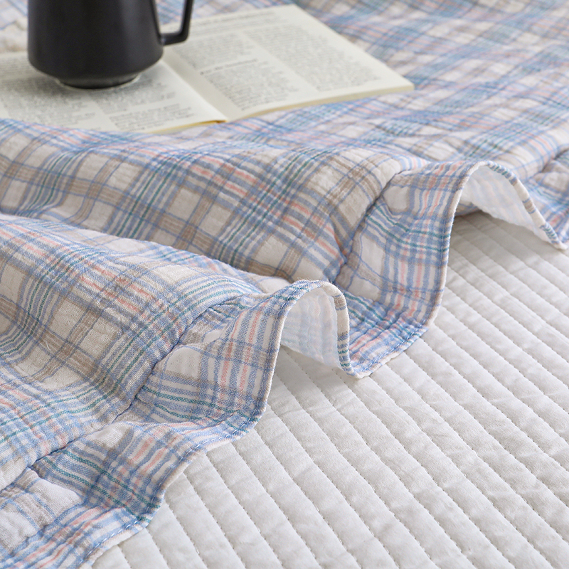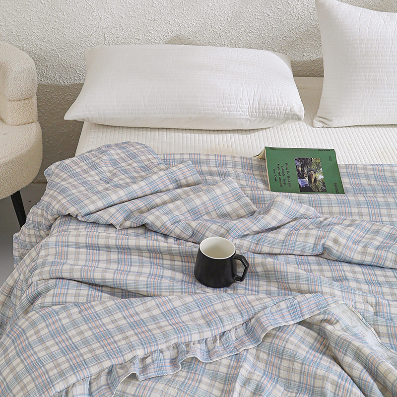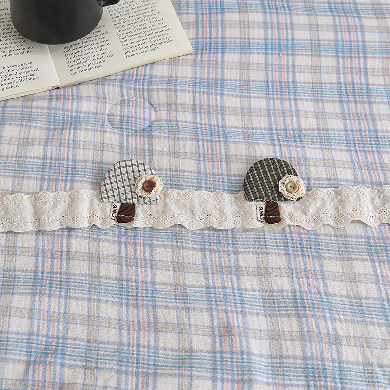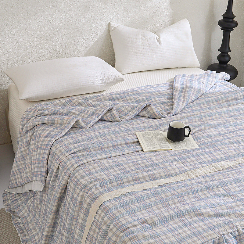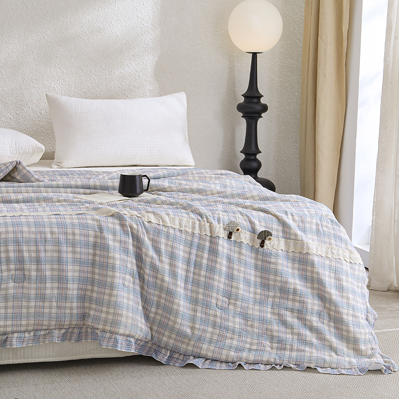 商品名称:八方汇 2025新款双层皱皱纱森林被被子被芯 蓝格