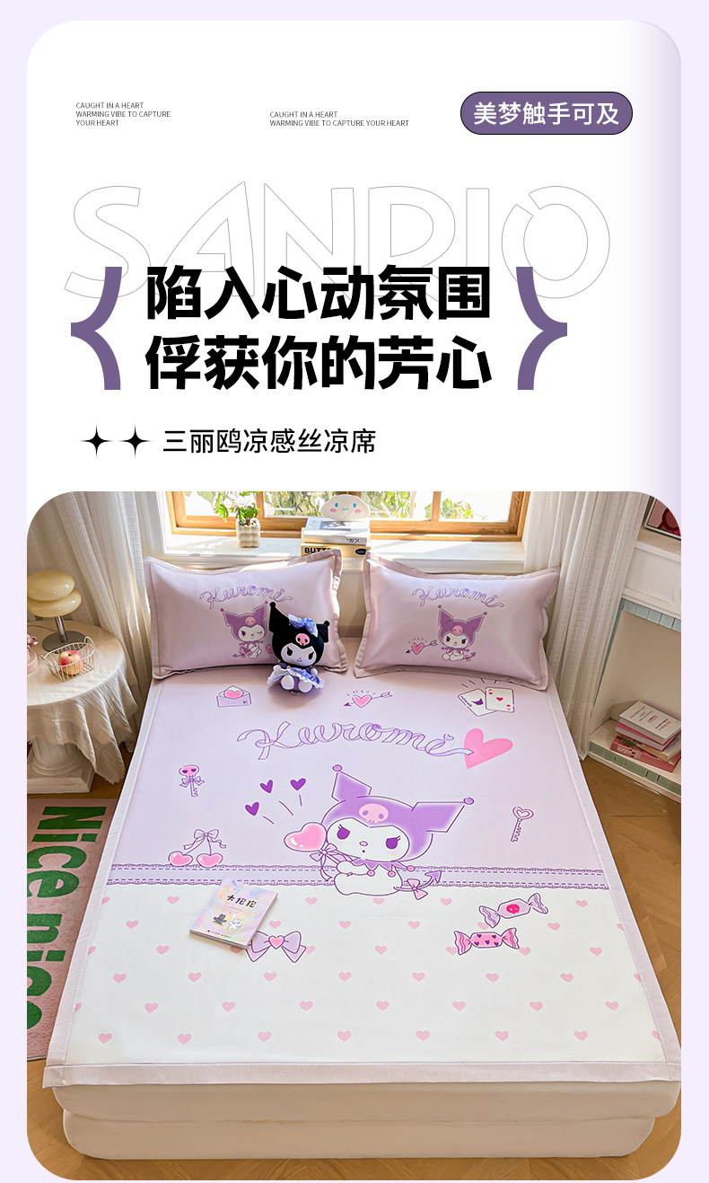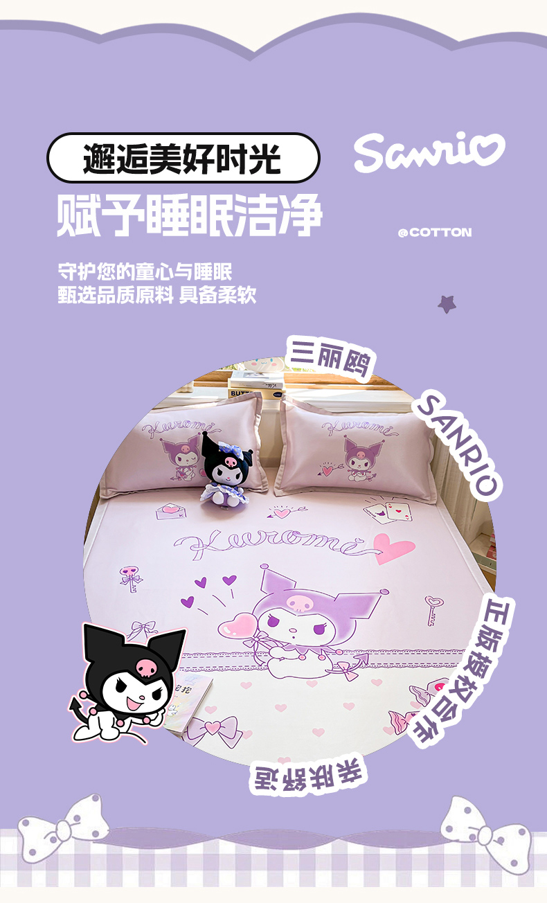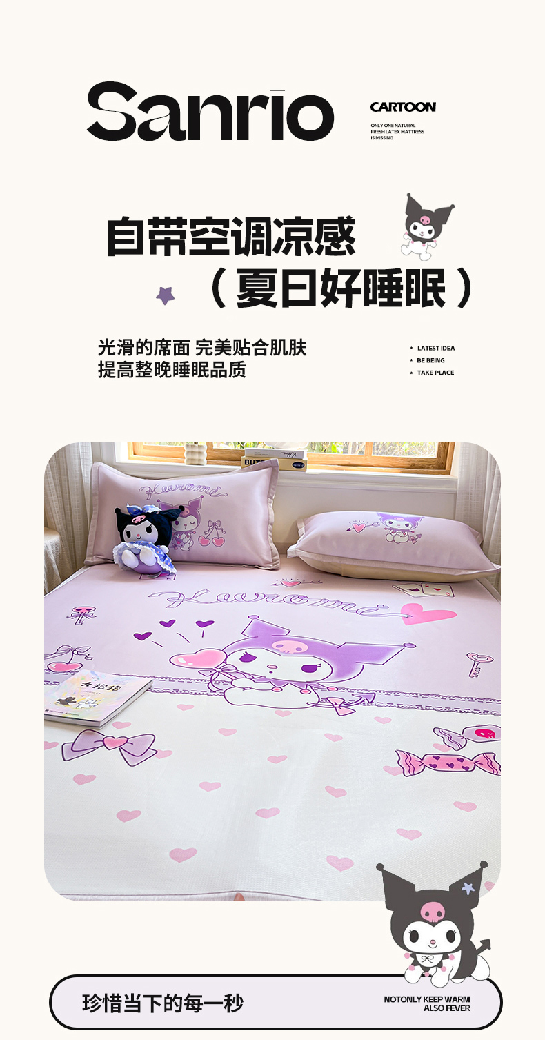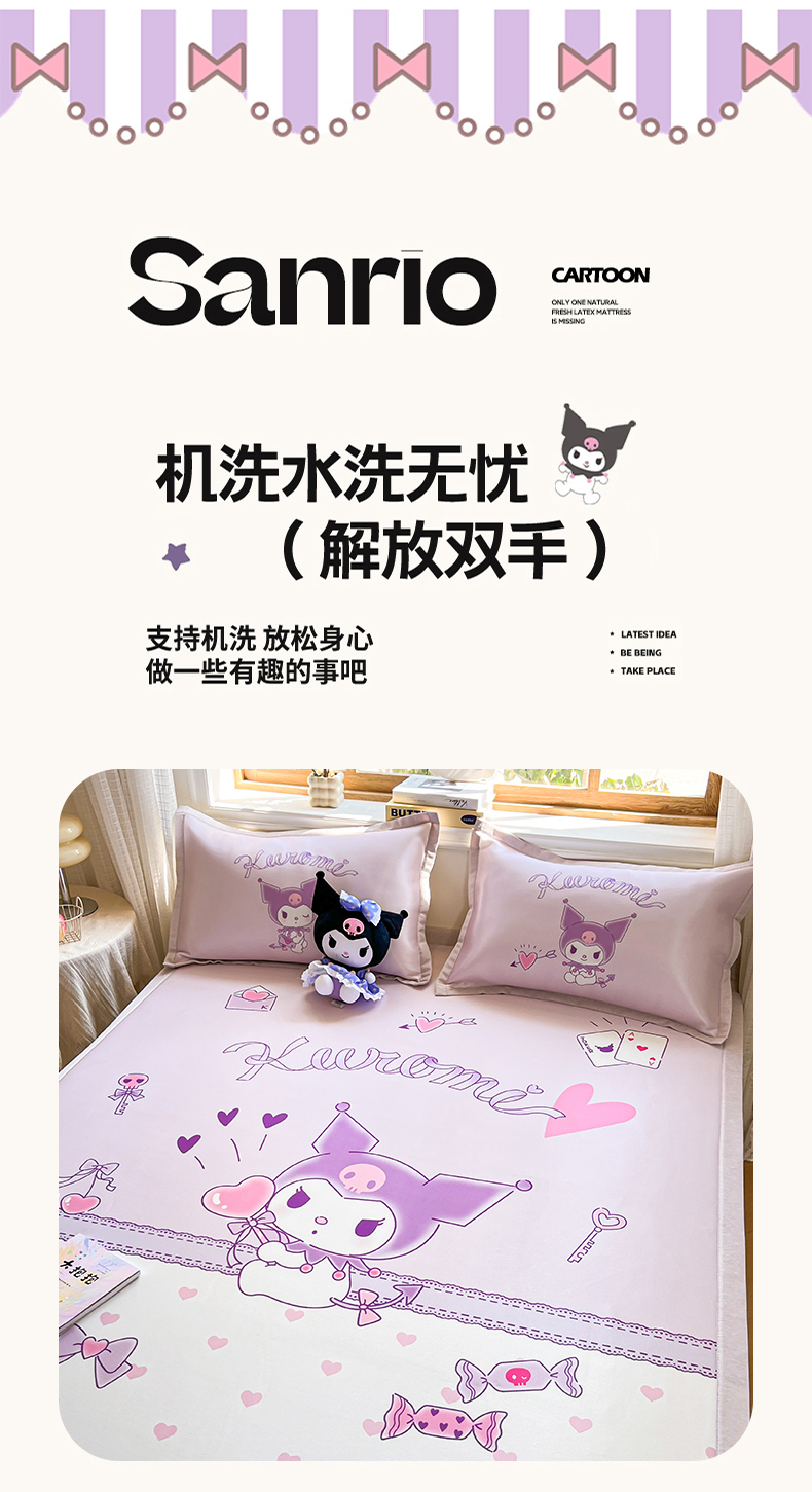 商品名称:博雅 2025新款三丽欧A类大版数码印花1200D冰丝凉席凉席席子 气球库洛米