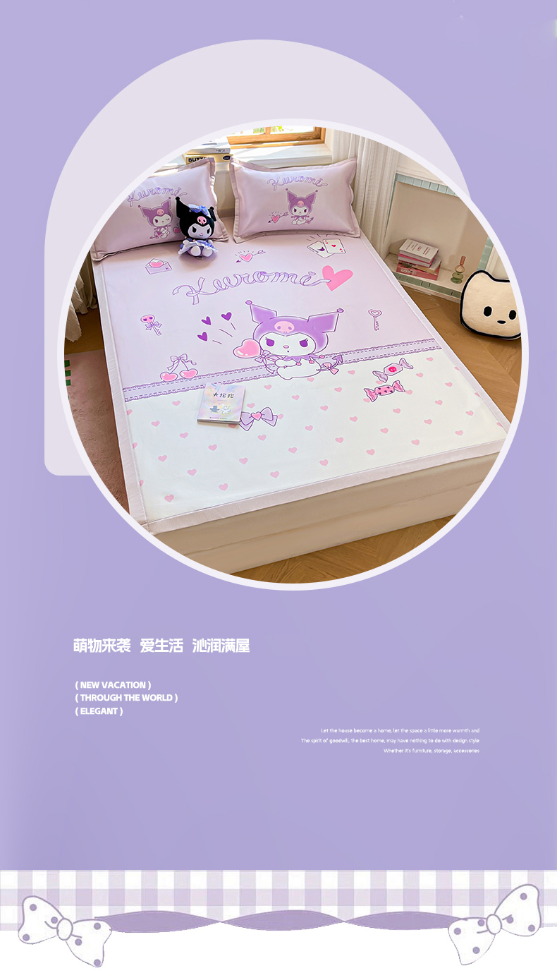 博雅 2025新款三丽欧A类大版数码印花1200D冰丝凉席凉席席子 气球库洛米