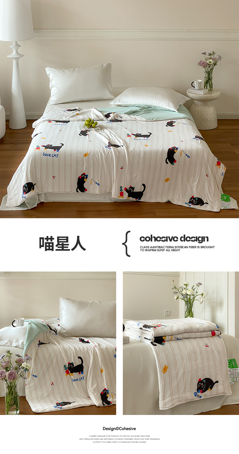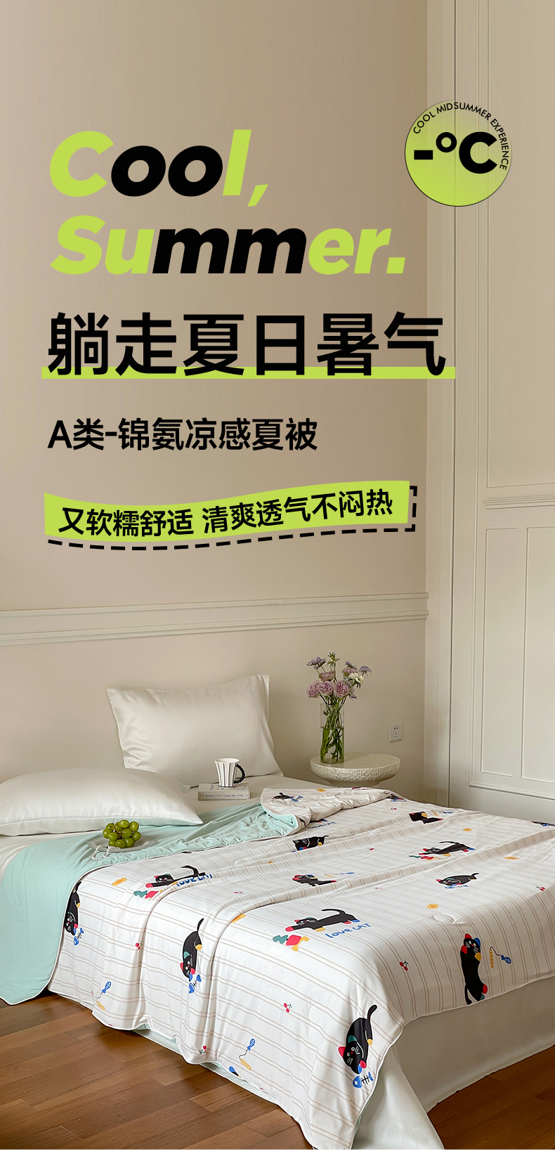 商品名称:华超针织 2025新款锦氨凉感夏被夏凉被空调被 喵星人