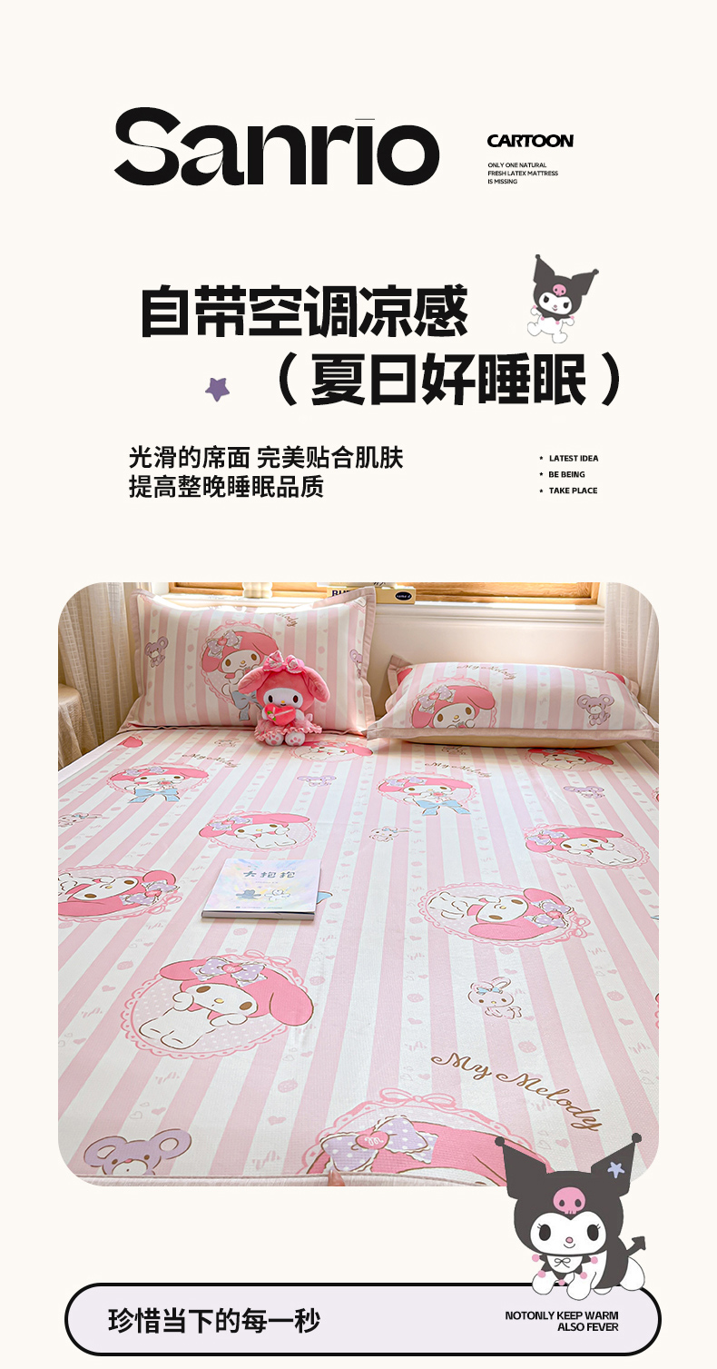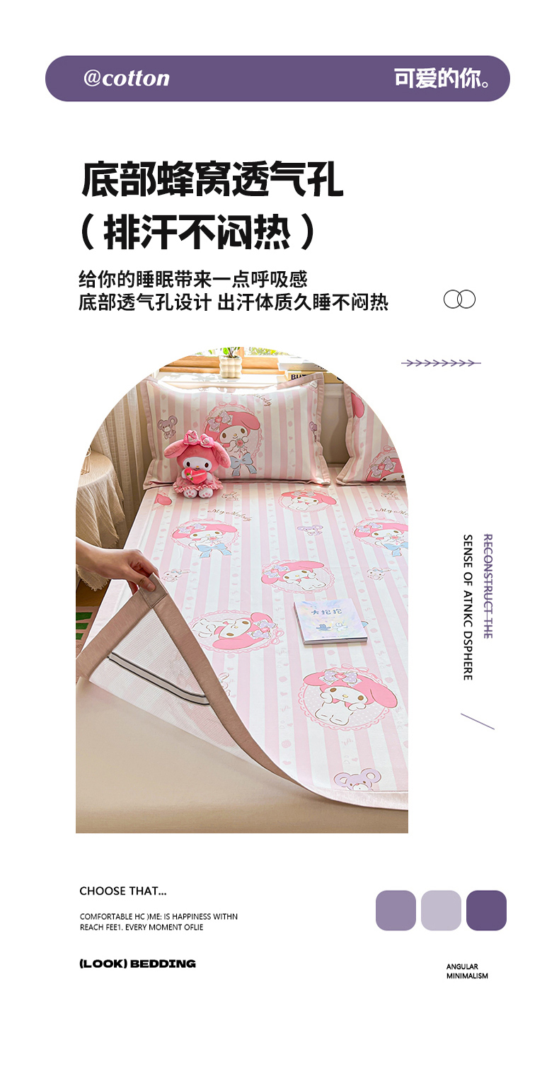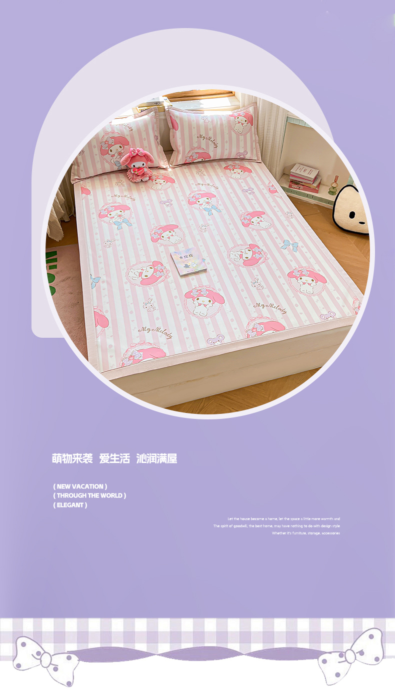 商品名称:博雅 2025新款三丽欧A类小版数码印花1200D冰丝凉席凉席席子 甜甜美乐蒂