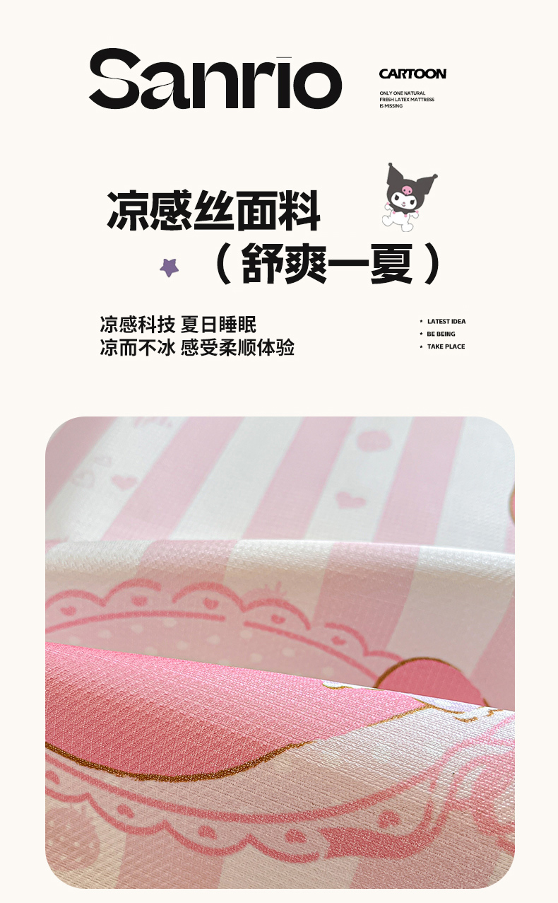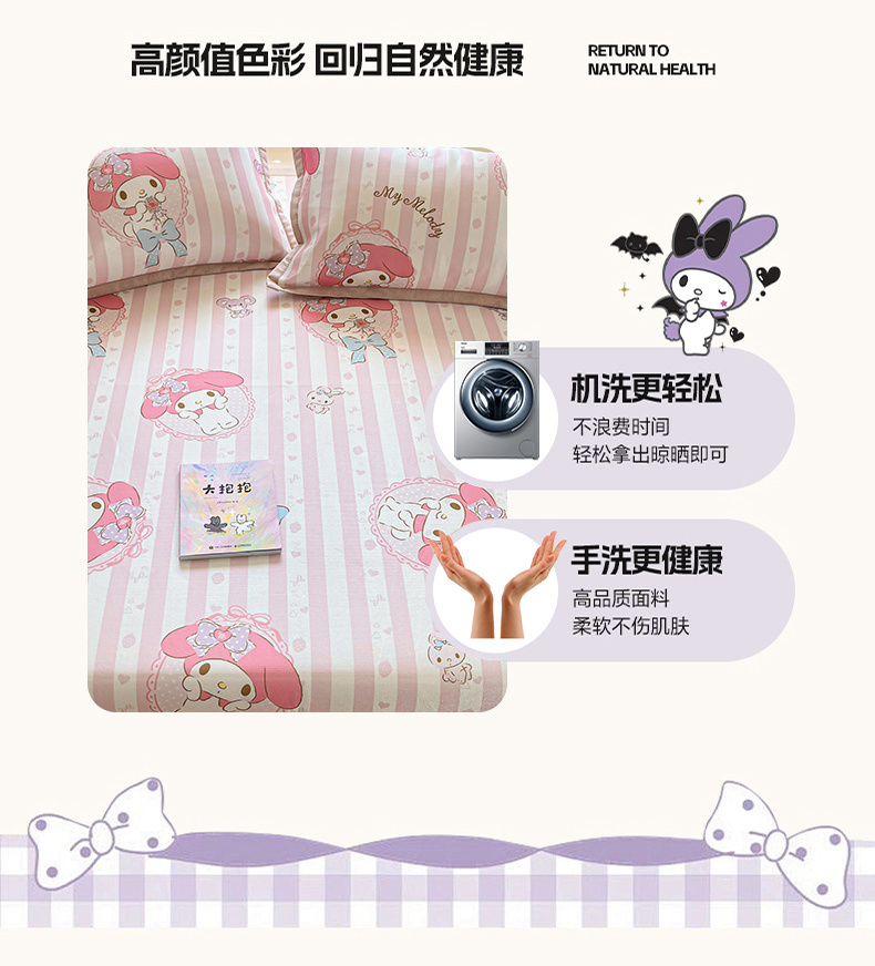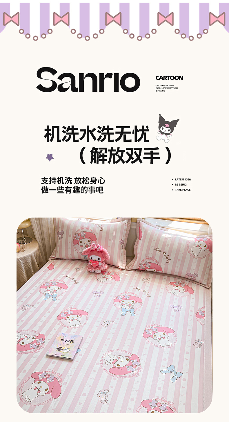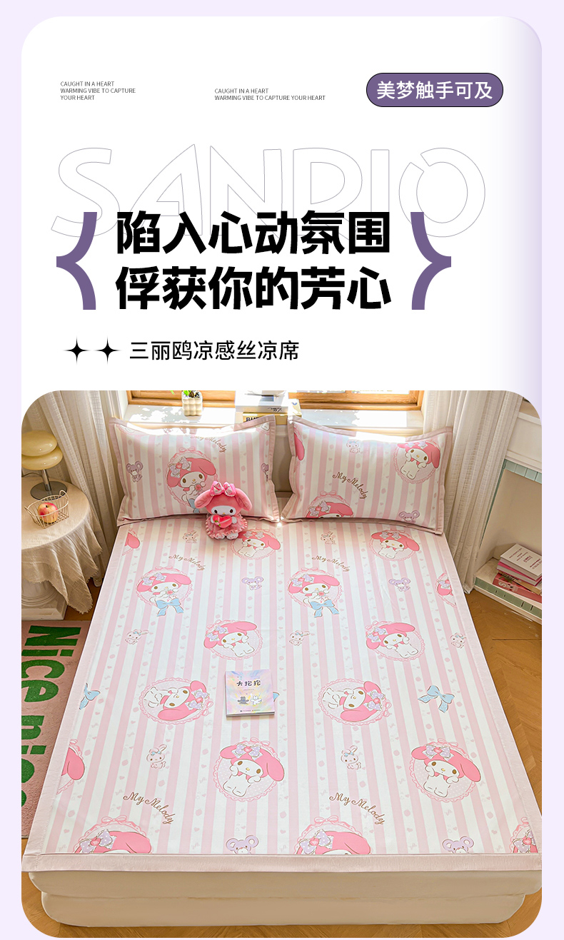 商品名称:博雅 2025新款三丽欧A类小版数码印花1200D冰丝凉席凉席席子 甜甜美乐蒂