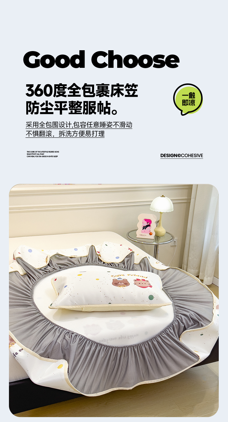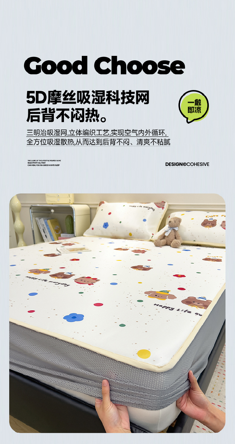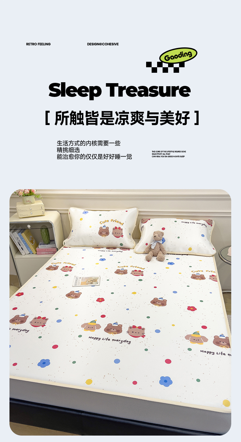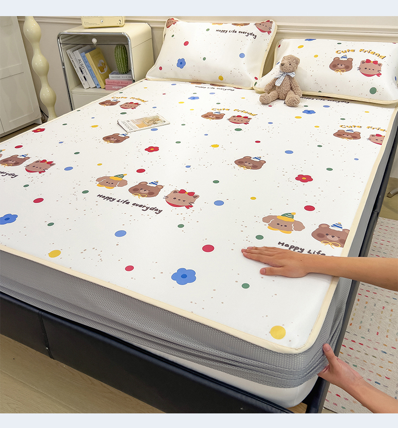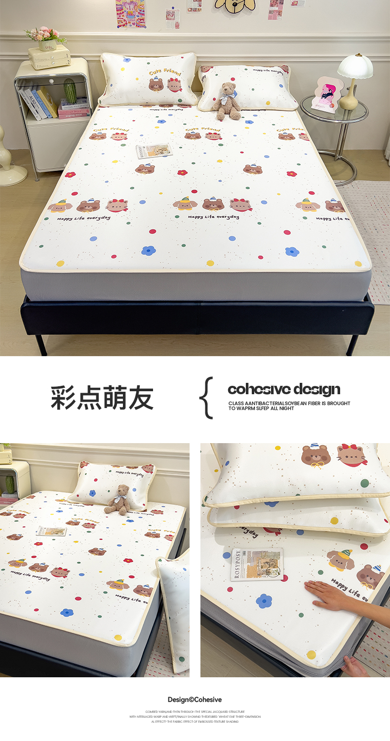 当前位置: 91家纺网 > 商品网购 > 床上用品 > 凉席 > 凉席套件 > 摩妮卡 2025新款小清新碳光冰丝软席床笠款单床笠三件套 彩点萌友
