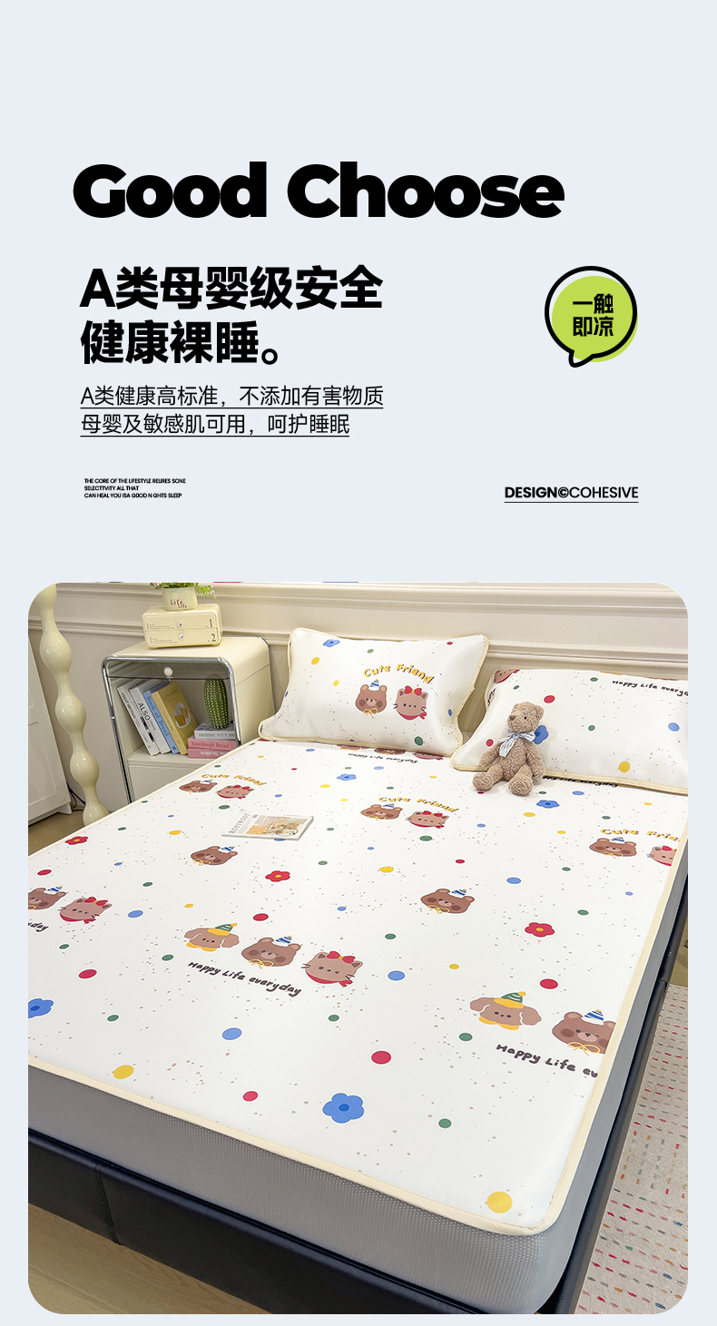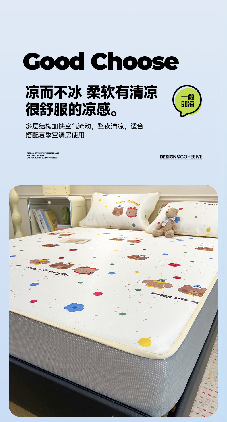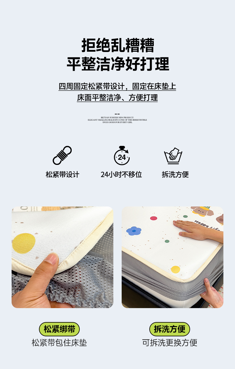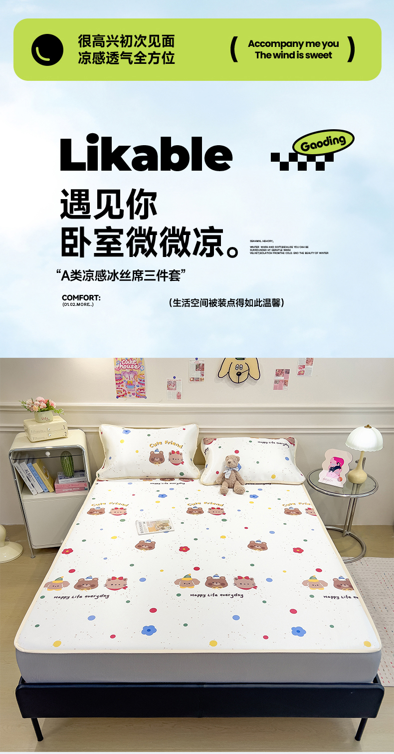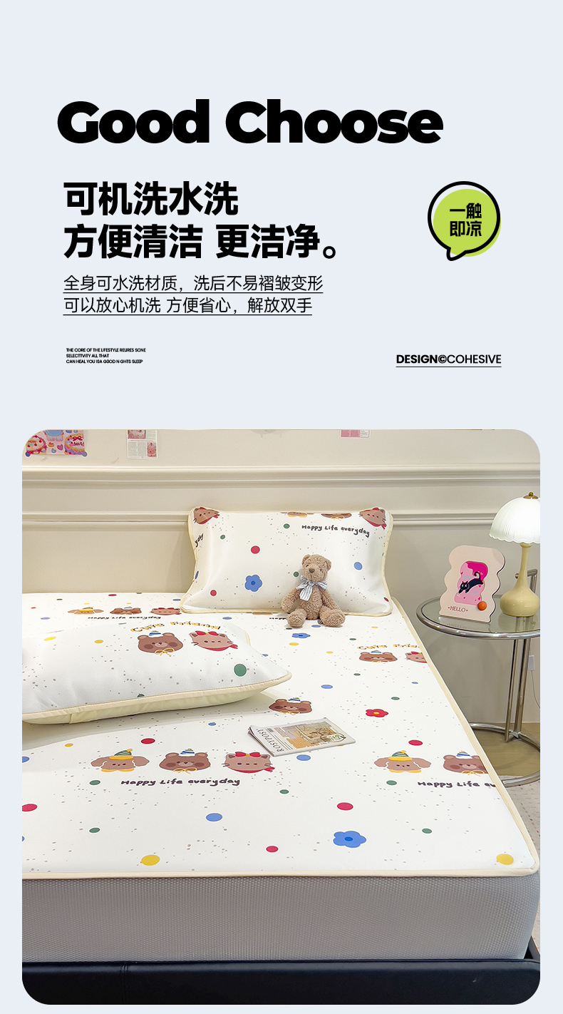 当前位置: 91家纺网 > 商品网购 > 床上用品 > 凉席 > 凉席套件 > 摩妮卡 2025新款小清新碳光冰丝软席床笠款单床笠三件套 彩点萌友