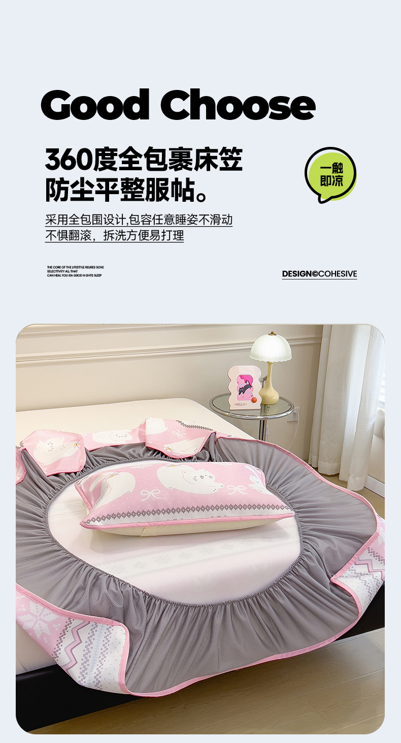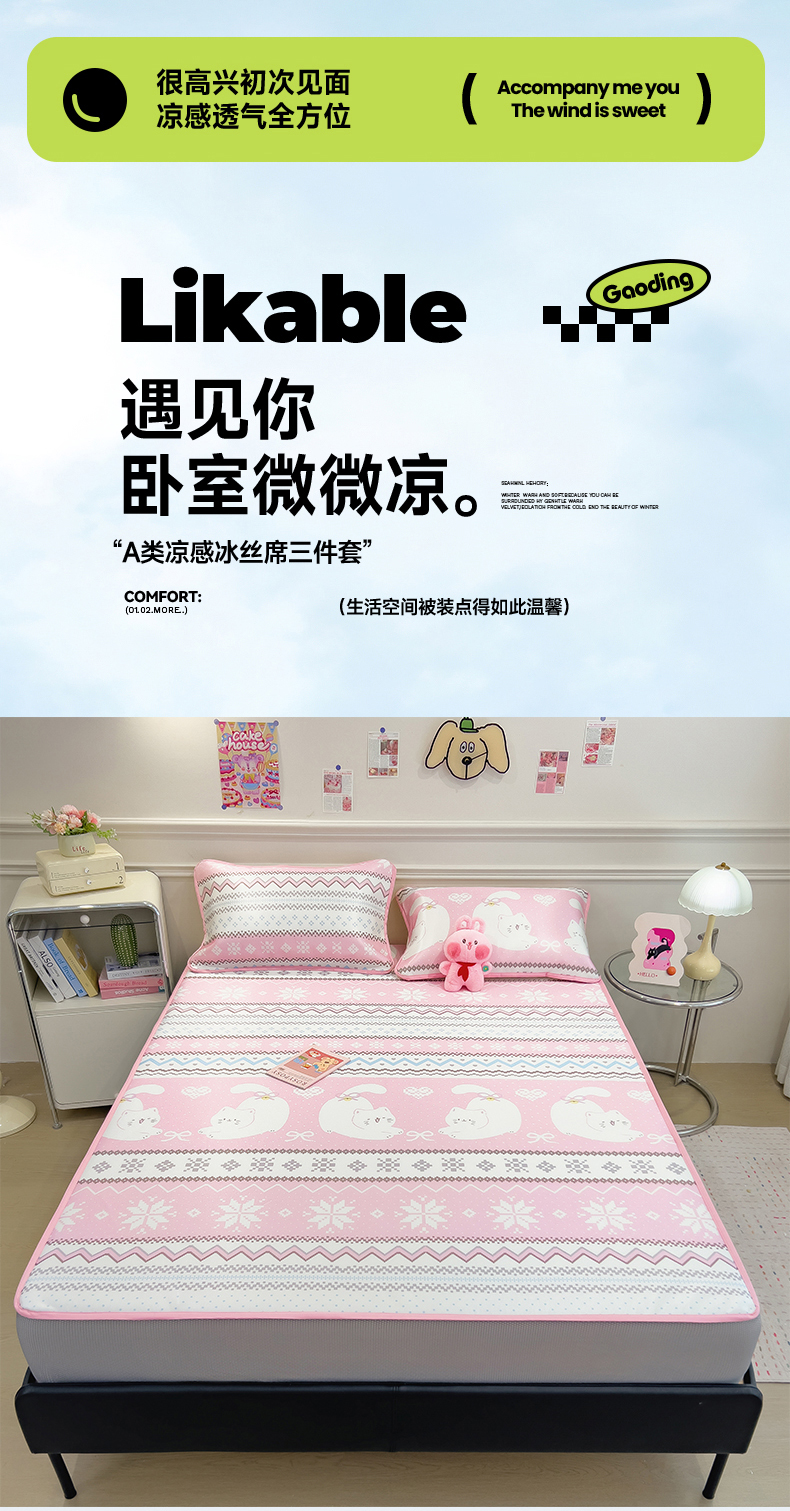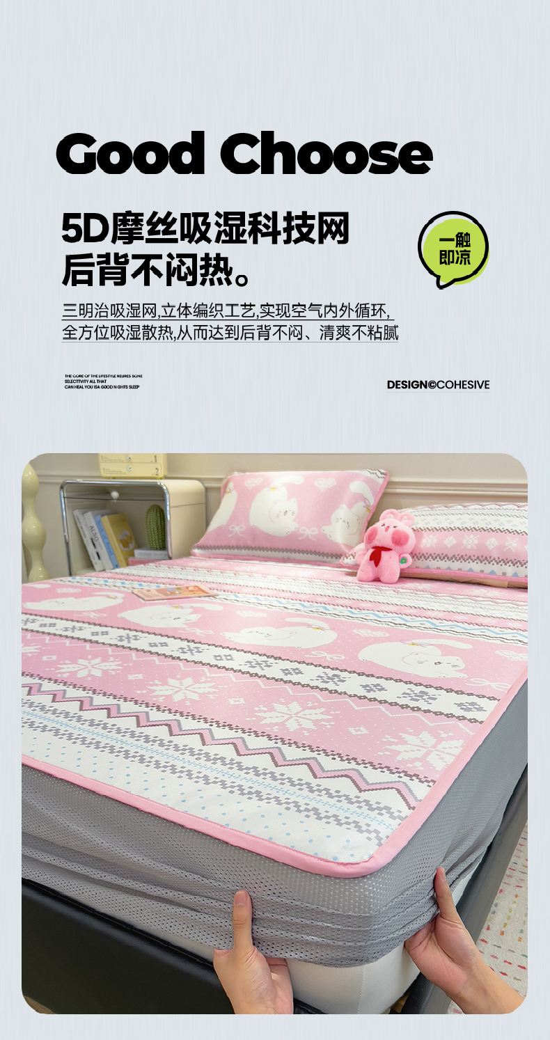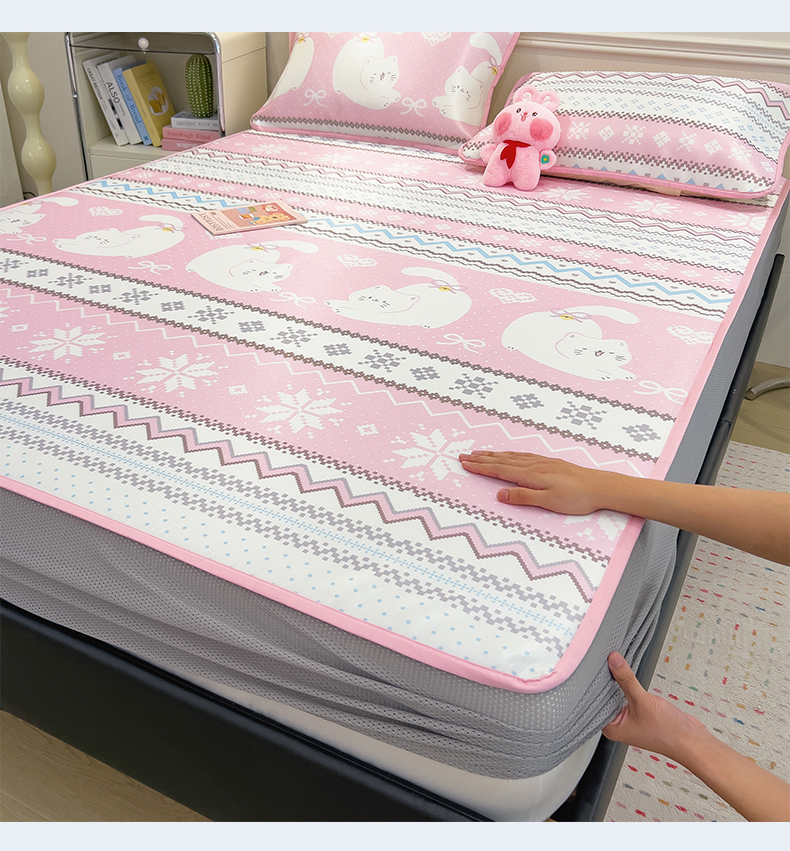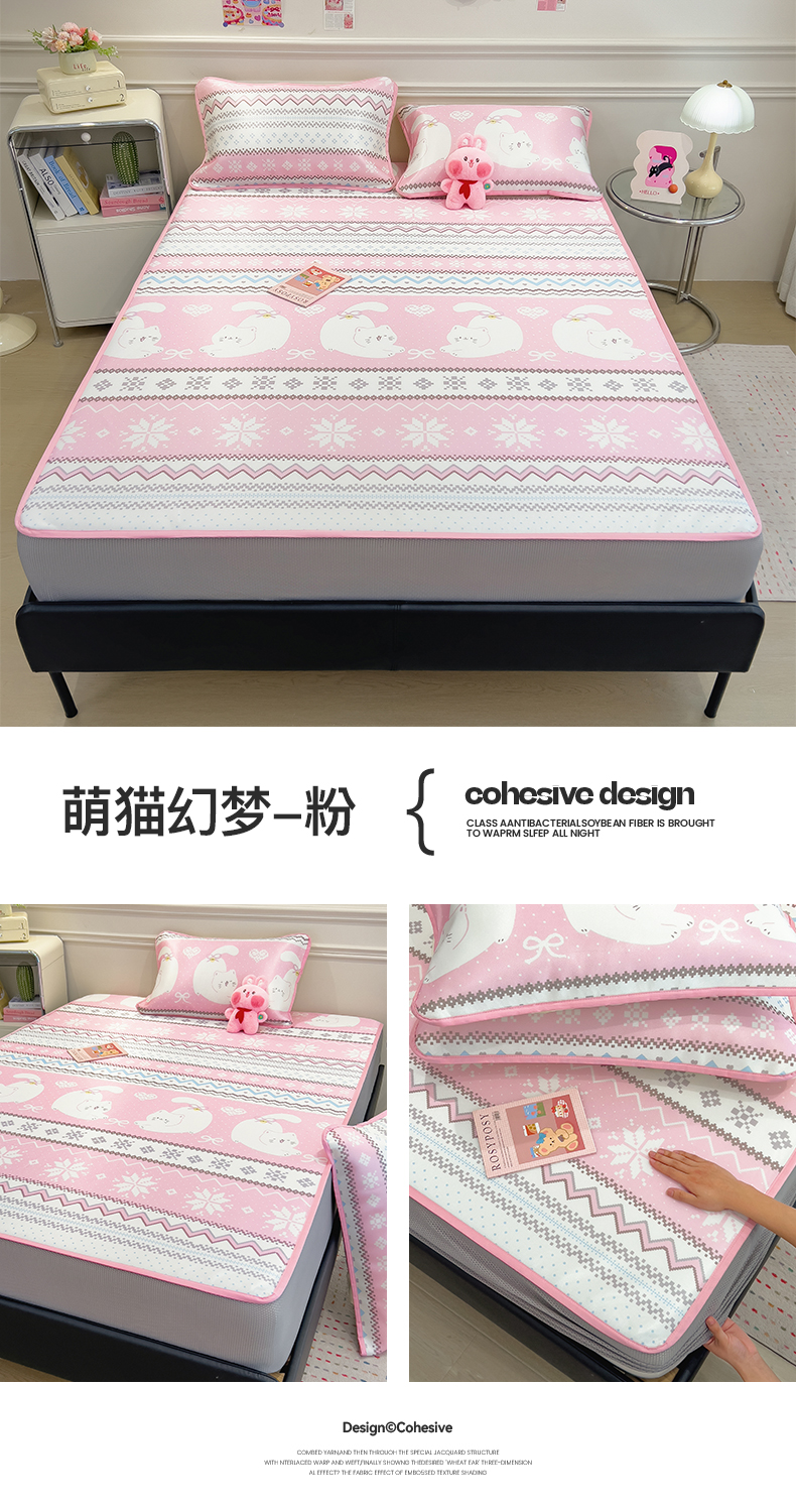当前位置: 91家纺网 > 商品网购 > 床上用品 > 凉席 > 凉席套件 > 摩妮卡 2025新款小清新碳光冰丝软席床笠款单床笠三件套 萌猫幻梦-粉