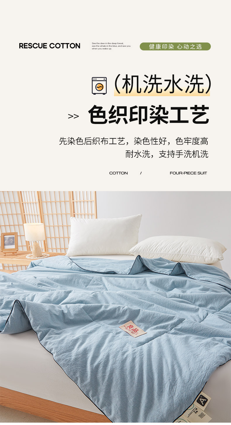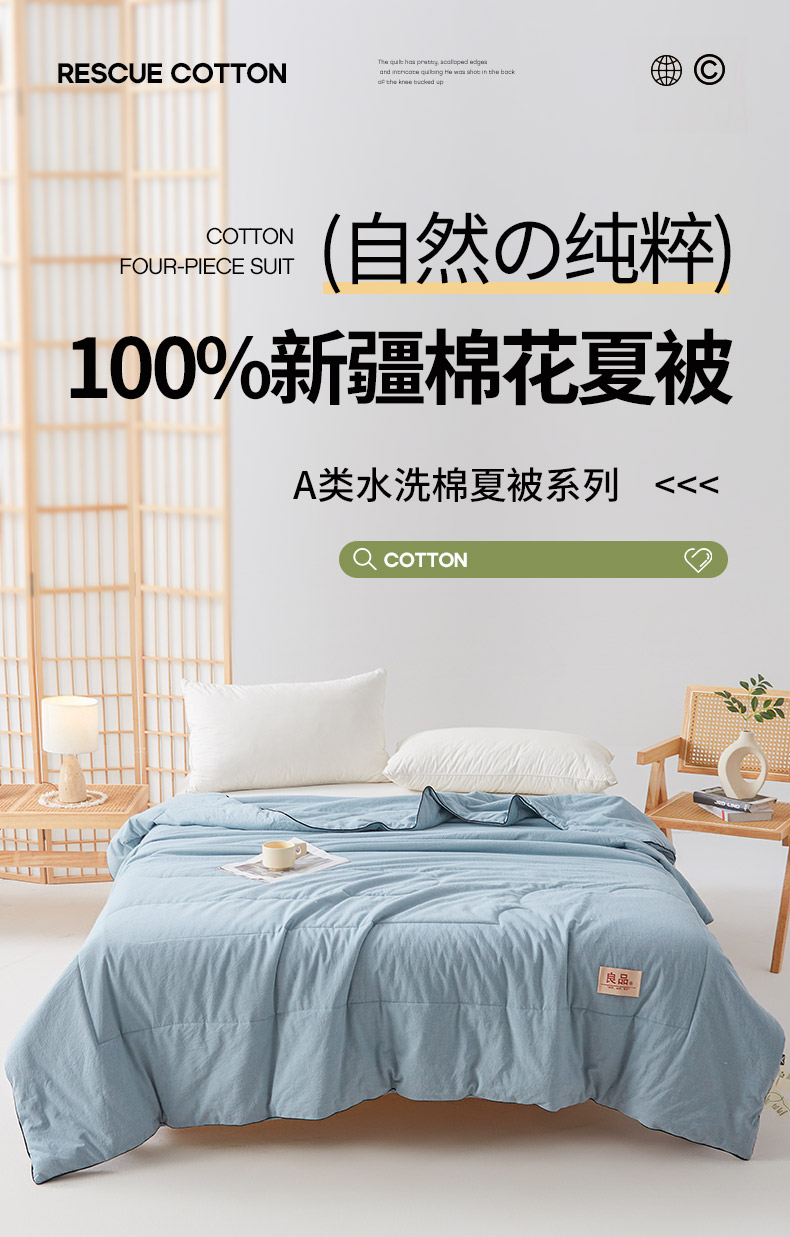 (总)熙宴家纺 2025新款水洗棉100%新疆棉花夏被-棉白,棉白+灰,棉白+蓝,棉白+绿,棉白+玉