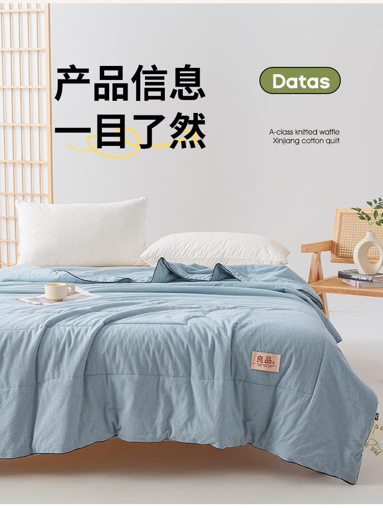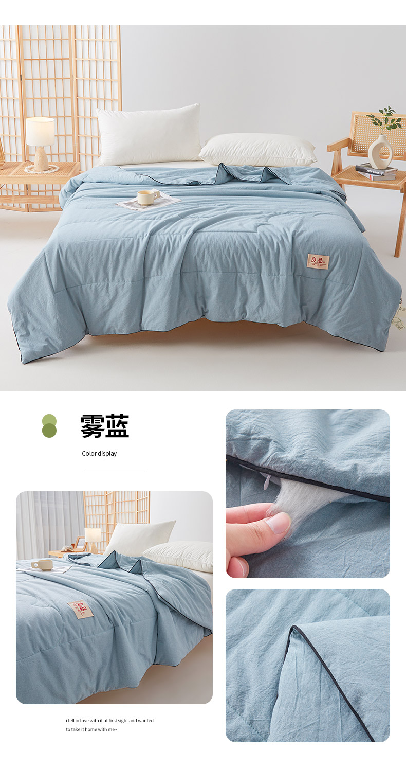 商品名称:熙宴家纺 2025新款纯色水洗棉新疆棉花夏被 雾蓝