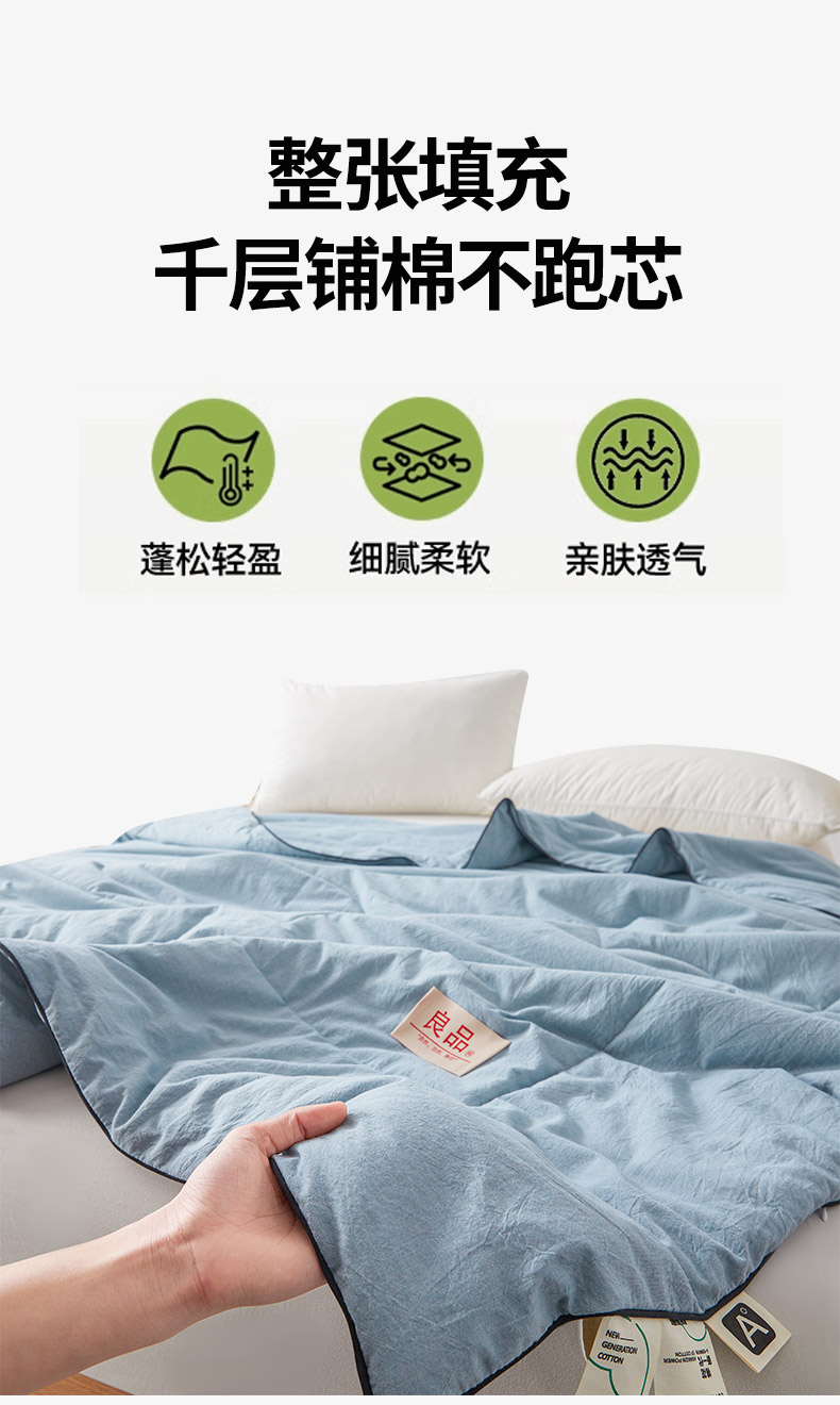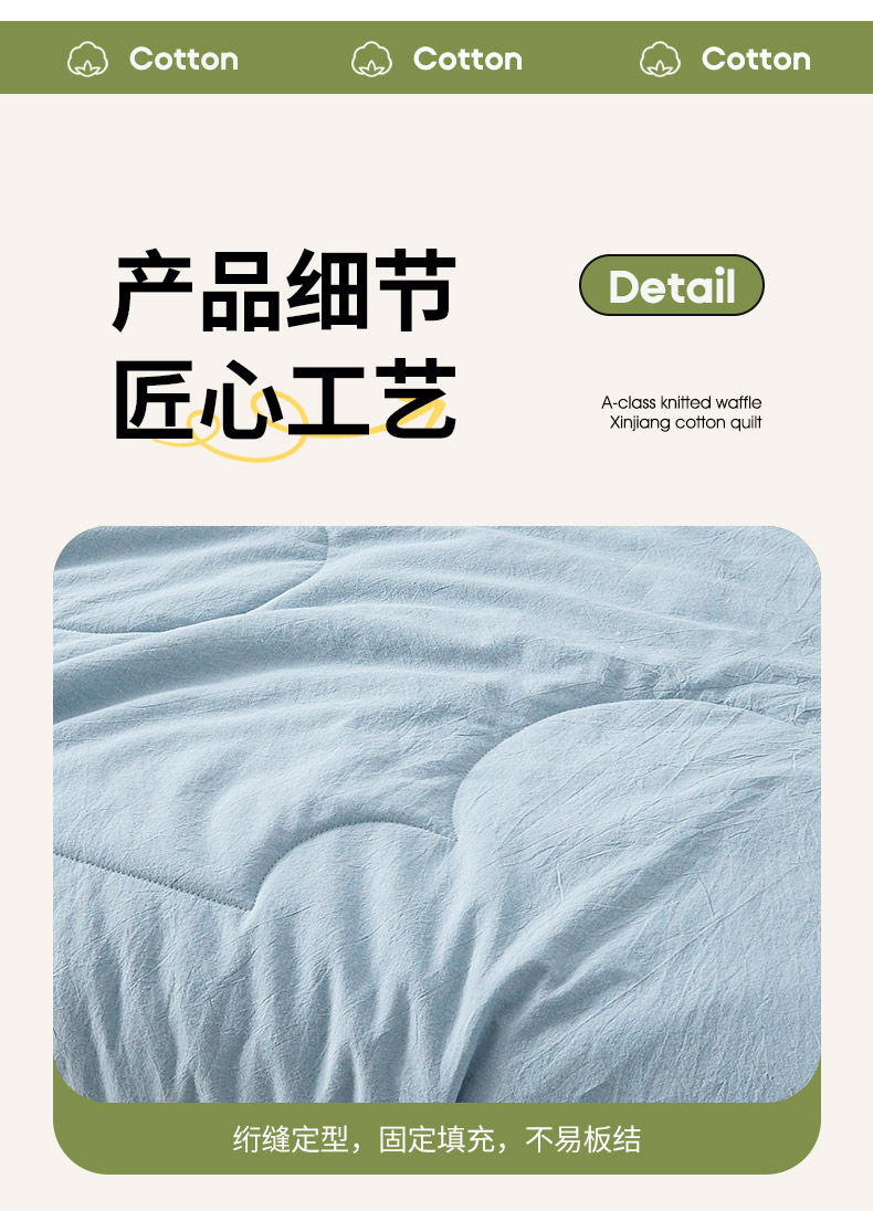 (总)熙宴家纺 2025新款水洗棉嵌绳款100%新疆棉花被,豆绿,粉玉,石灰,雾蓝