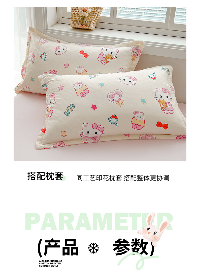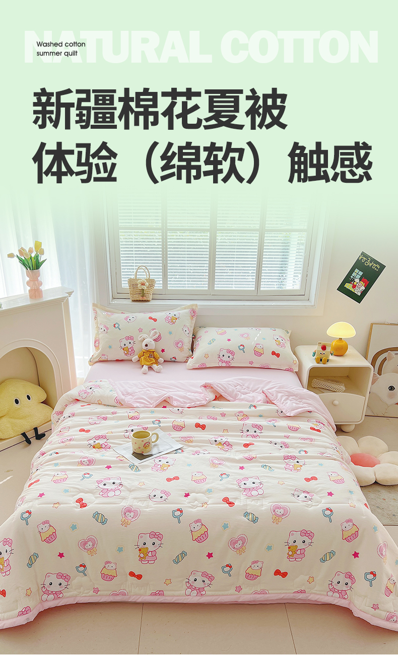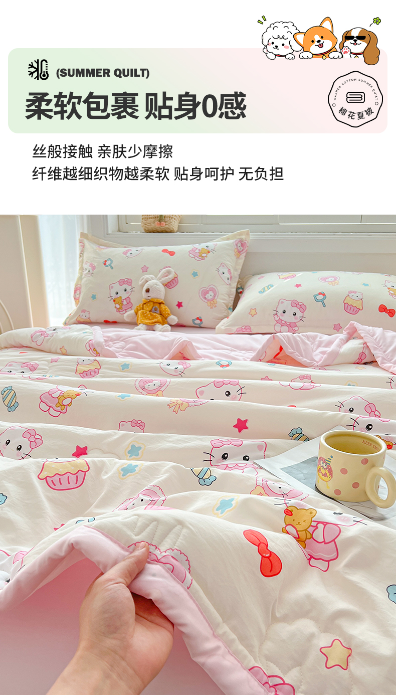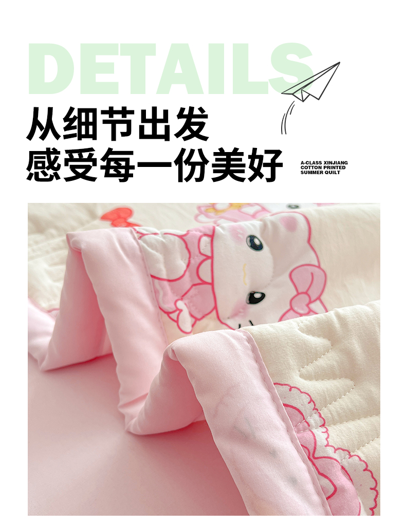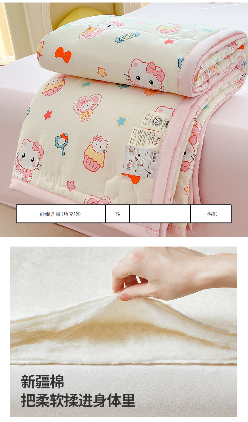 商品名称:西域种棉人·千百笠 2025新款A类新疆棉花夏凉被加宽包边水洗棉卡通印花吸湿透气棉花夏被空调被 凌香 蛋糕猫
