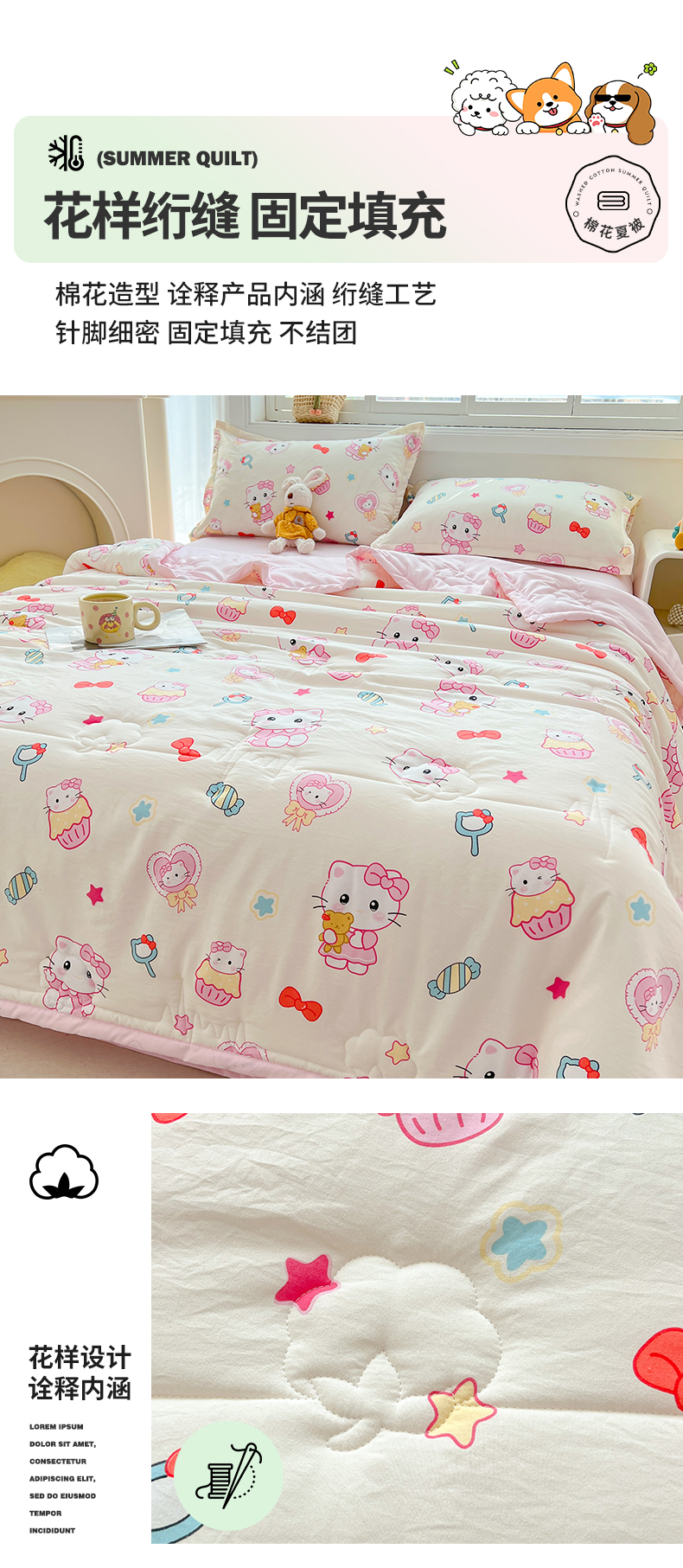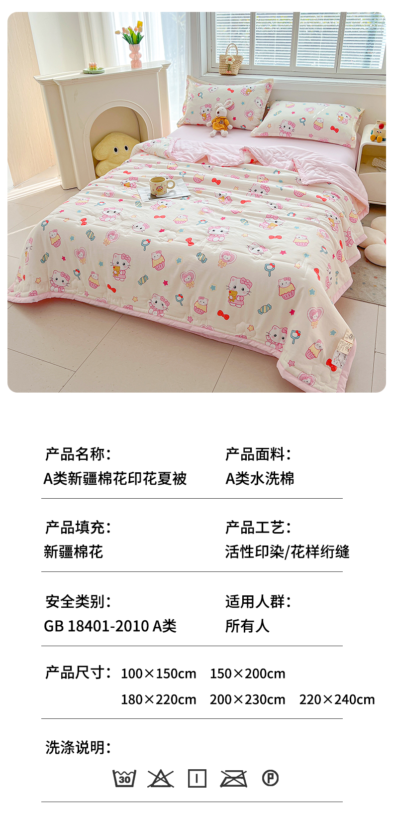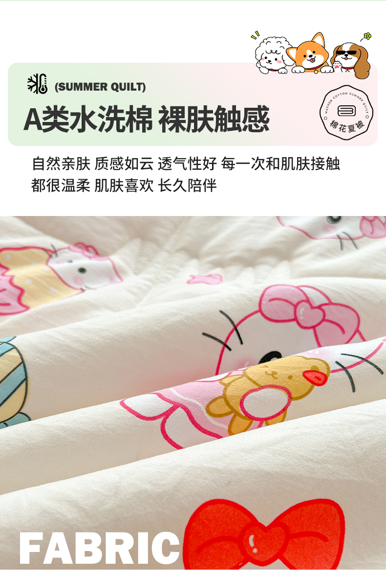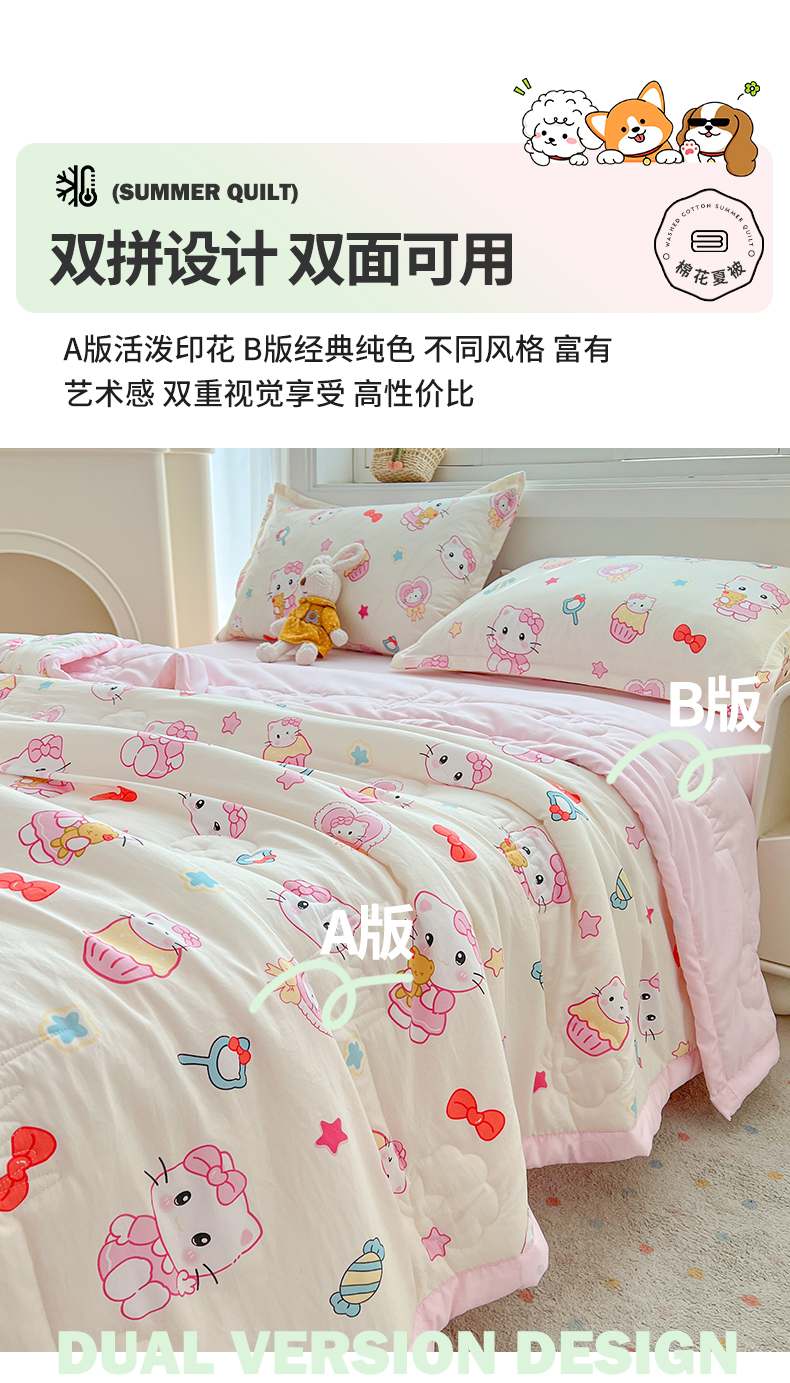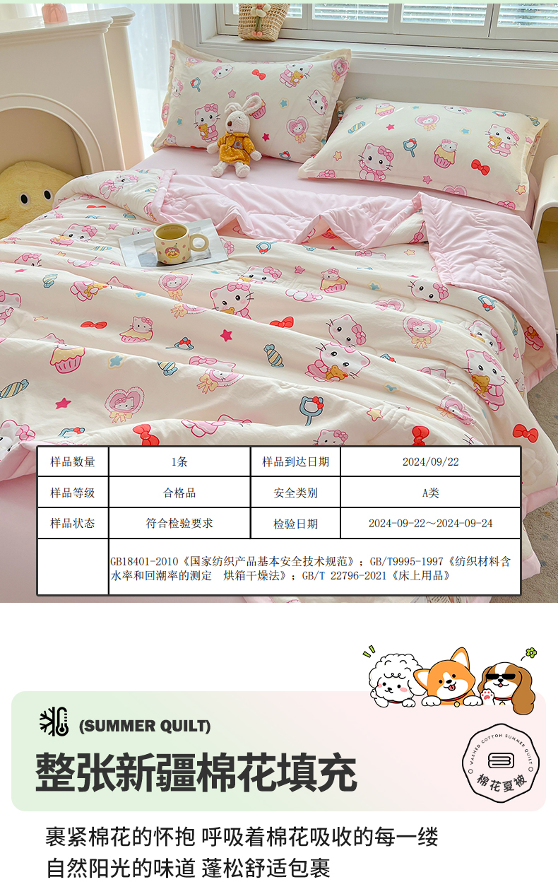 商品名称:西域种棉人·千百笠 2025新款A类新疆棉花夏凉被加宽包边水洗棉卡通印花吸湿透气棉花夏被空调被 凌香 蛋糕猫