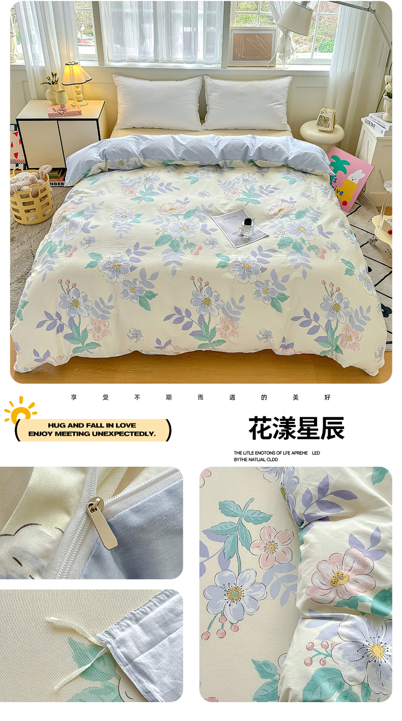 商品名称:红粉佳人家纺 2025春夏新款A类全棉纯棉12868纯棉单被套 花漾星辰