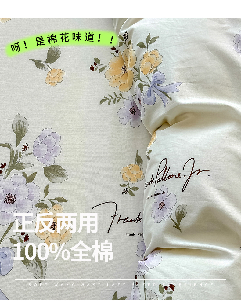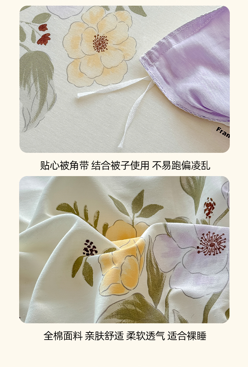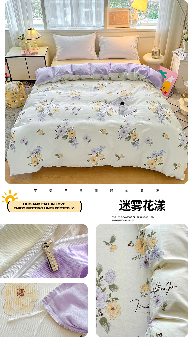 商品名称:红粉佳人家纺 2025春夏新款A类全棉纯棉12868纯棉单被套 迷雾花漾