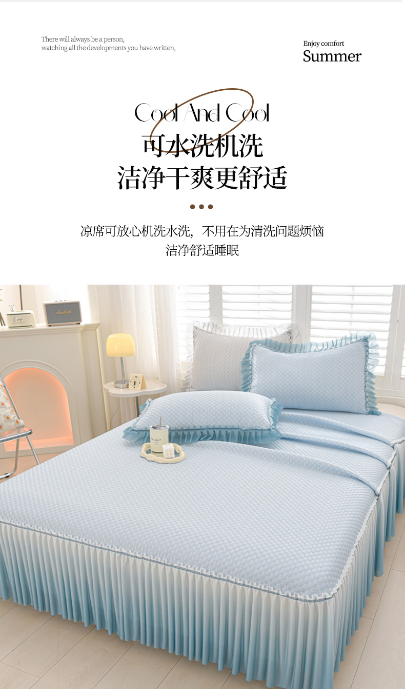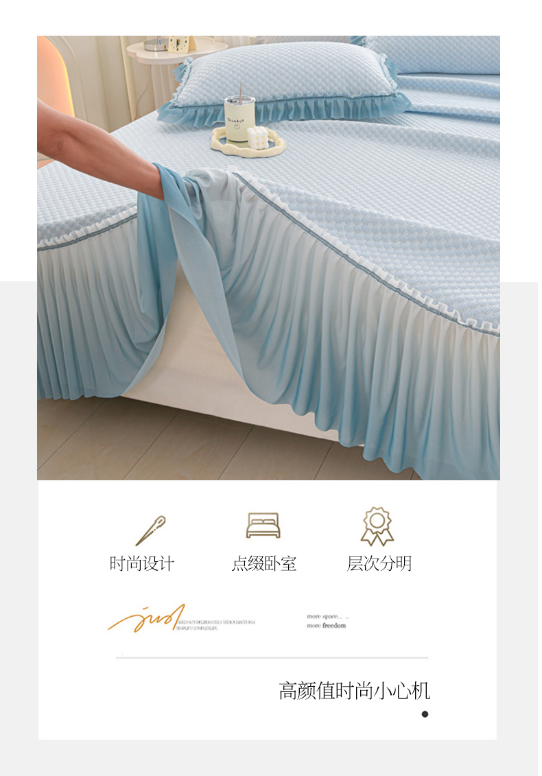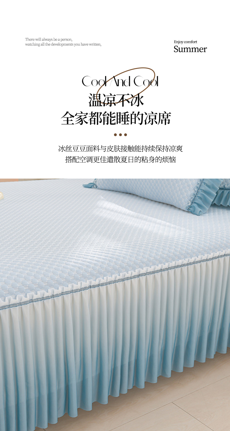 商品名称:梦之星 2025新款凉豆豆凉席渐变床裙款三件套 纯色渐变款-蓝