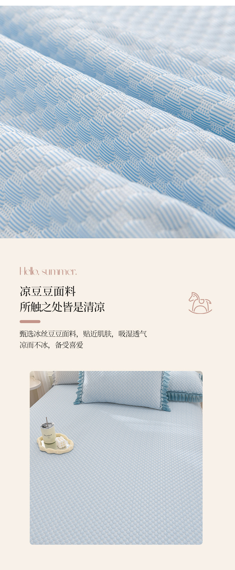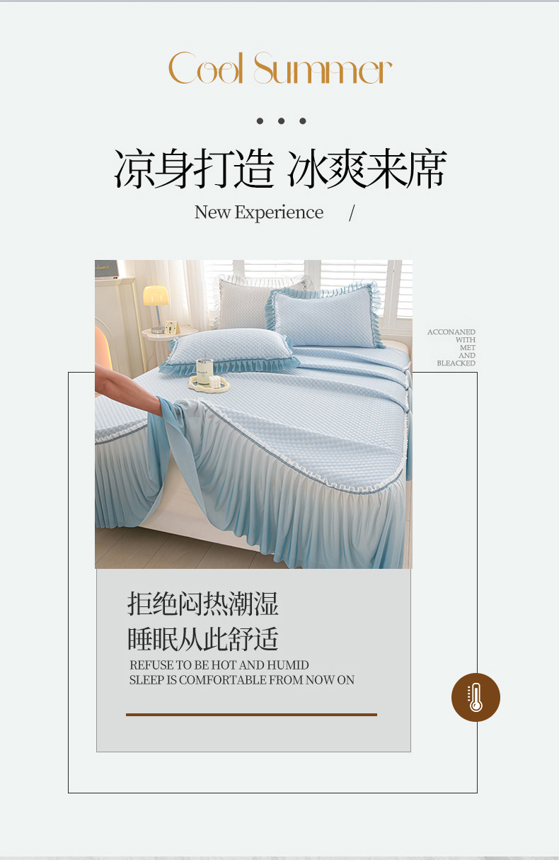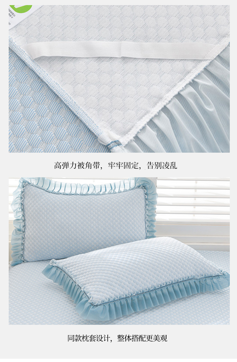 商品名称:梦之星 2025新款凉豆豆凉席渐变床裙款三件套 纯色渐变款-蓝