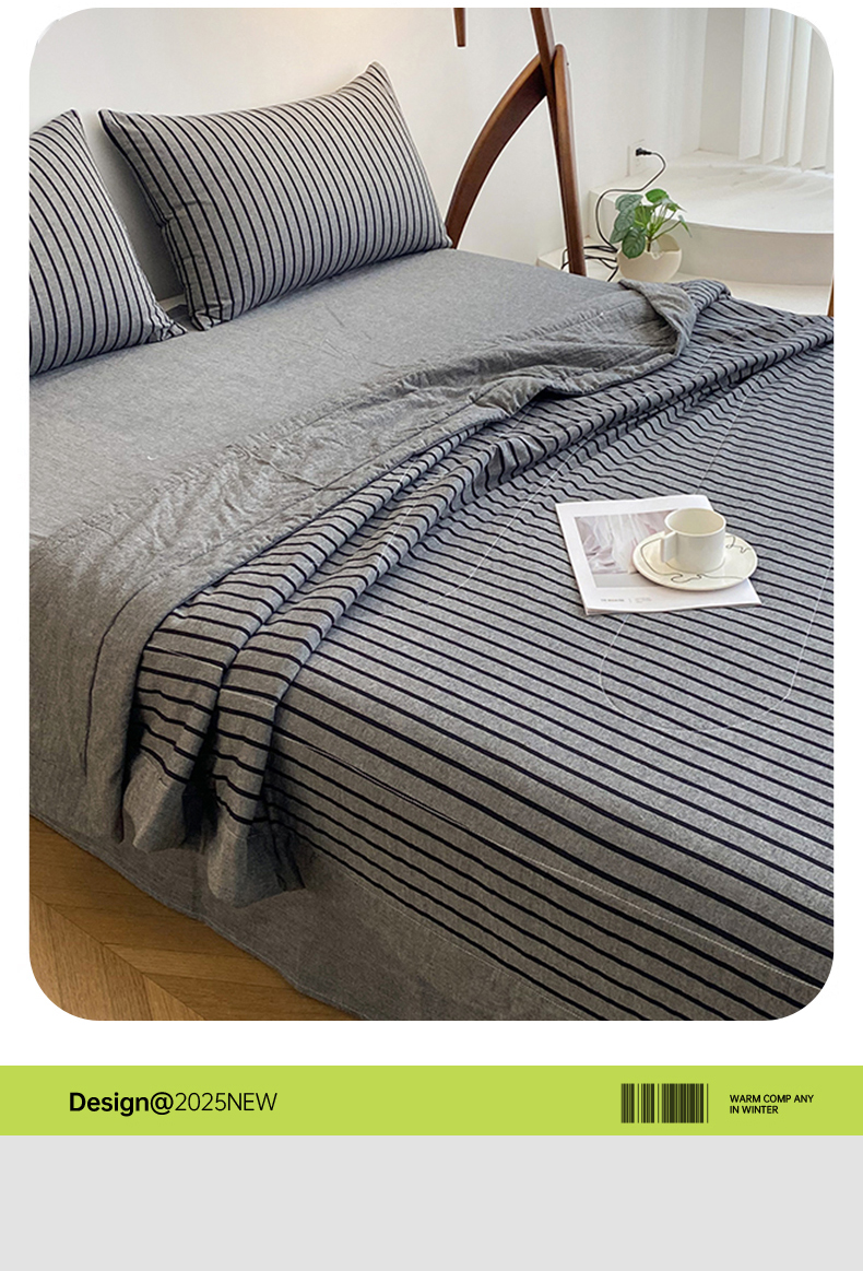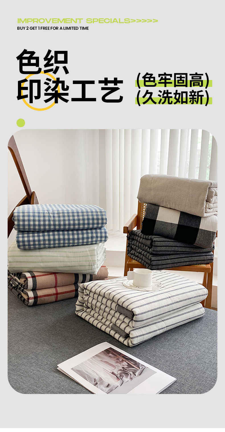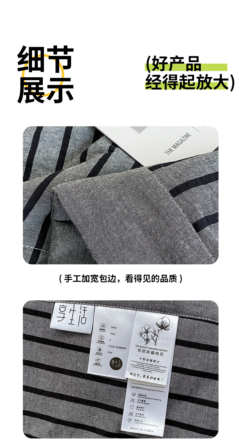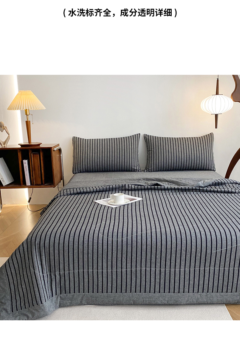 商品名称:青螺家纺 2025全棉水洗棉格子双面色织新疆棉花被AB版夏凉空调被 中条深灰