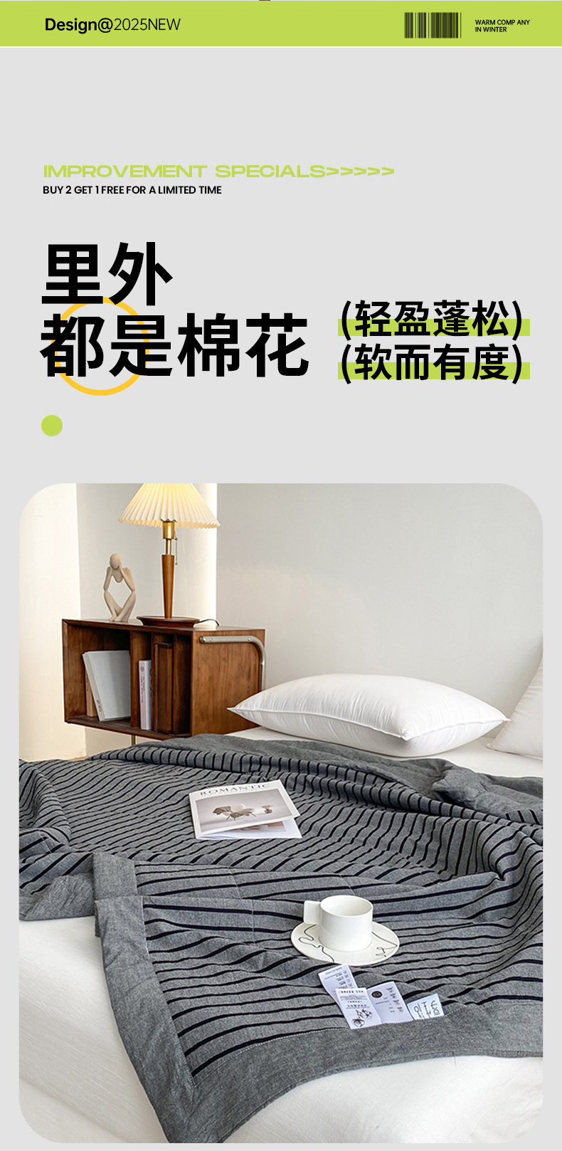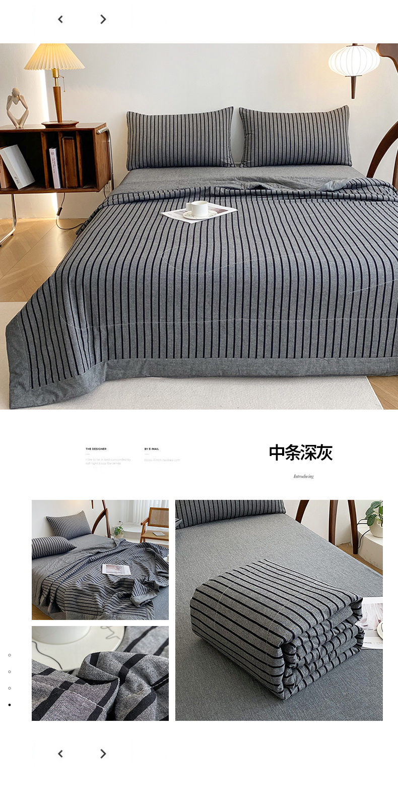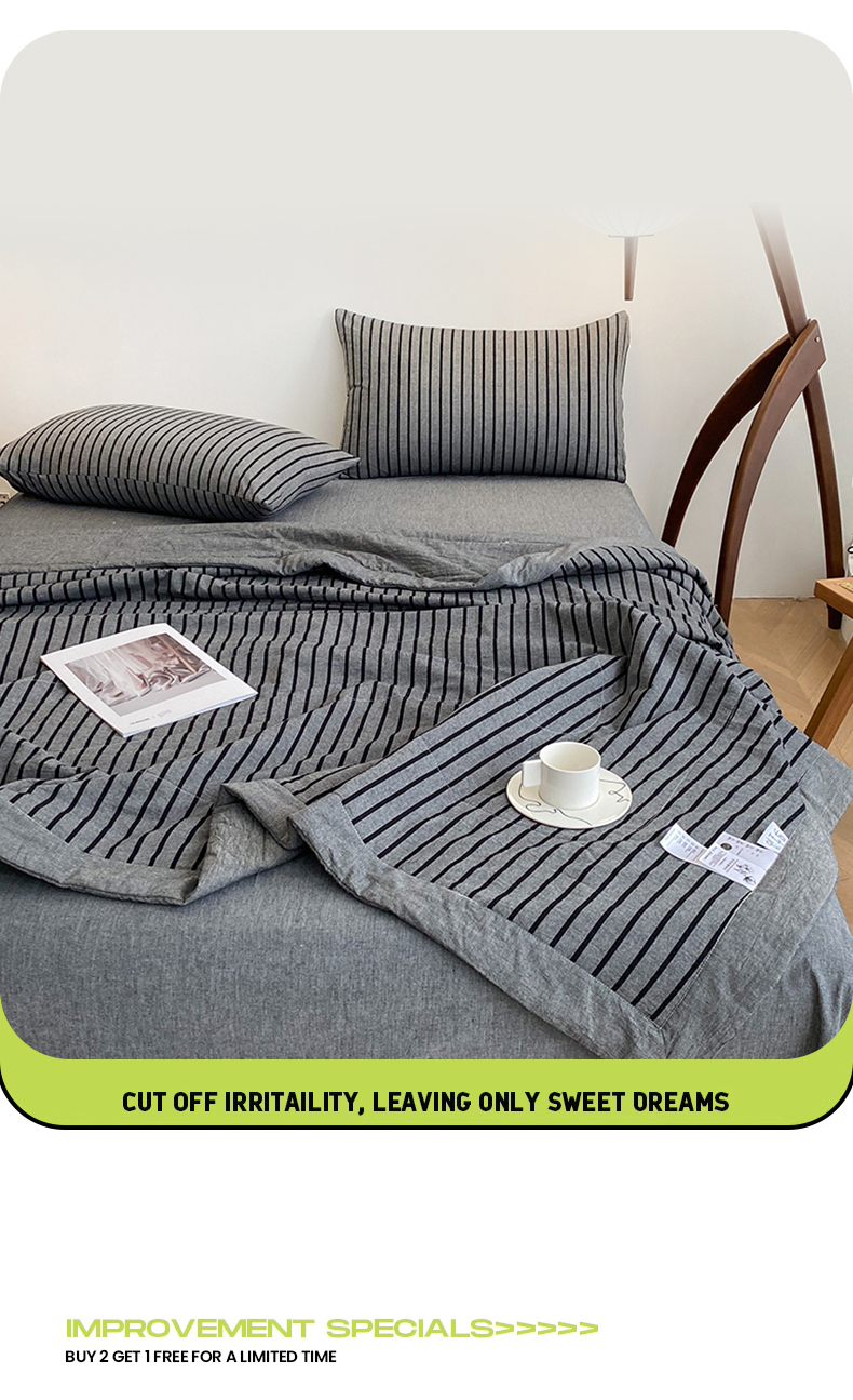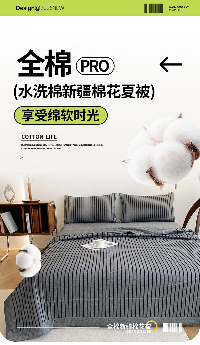 商品名称:青螺家纺 2025全棉水洗棉格子双面色织新疆棉花被AB版夏凉空调被 中条深灰