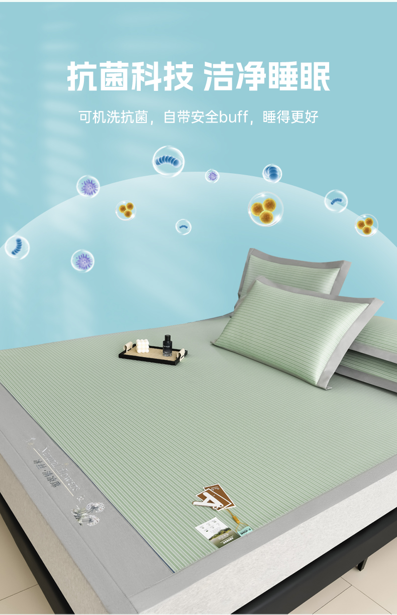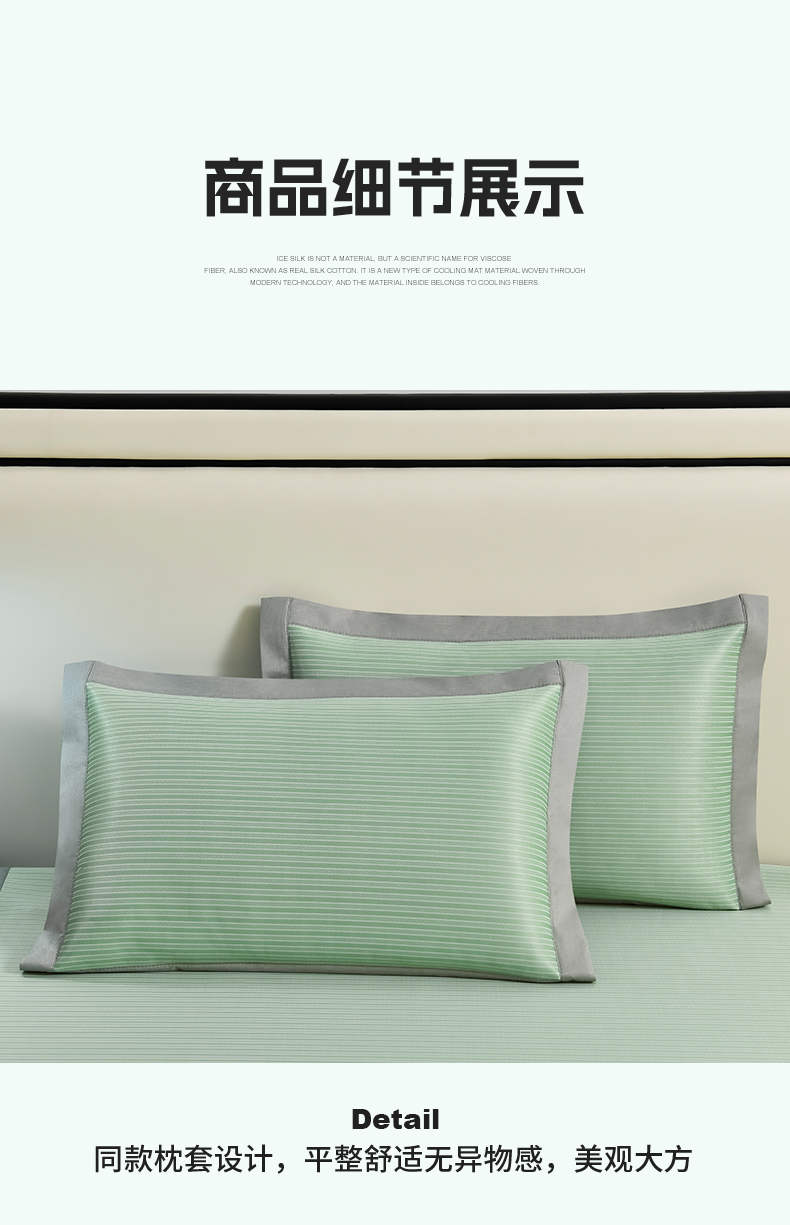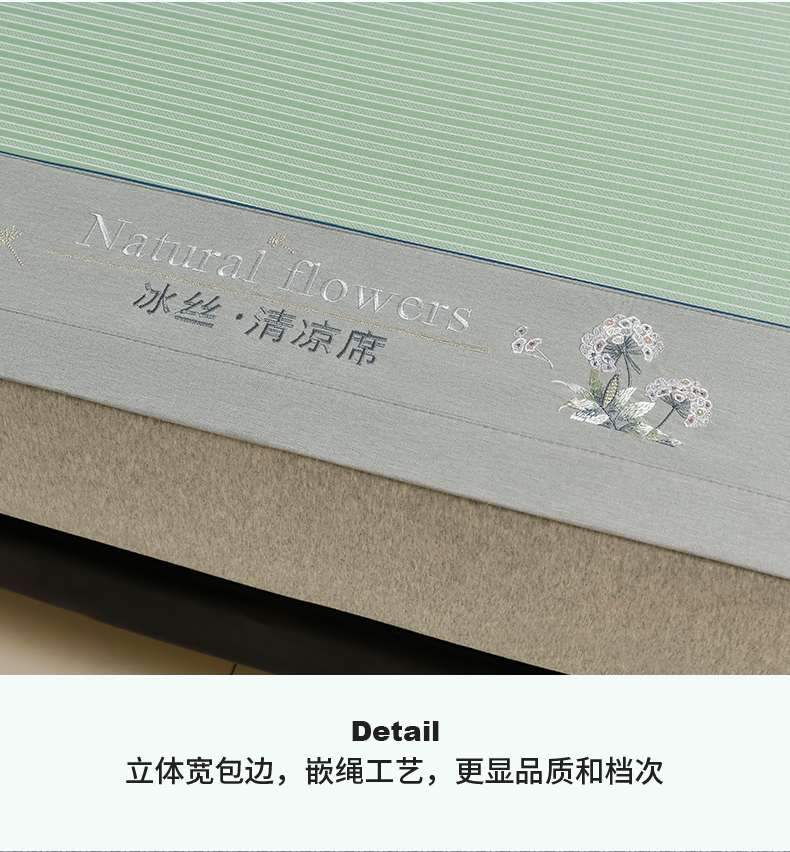 商品名称:小牛席业 2025新款经典条纹-绣球冰丝清凉席系列 绿色