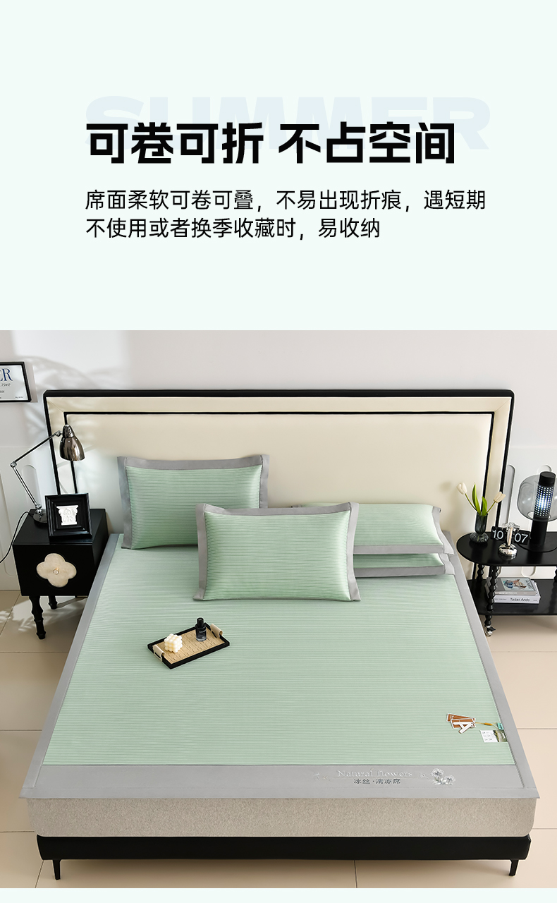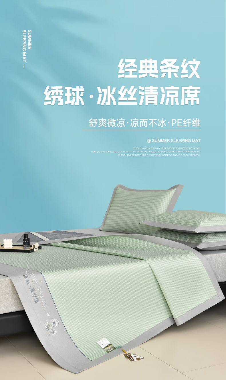 小牛席业 2025新款经典条纹-绣球冰丝清凉席系列 绿色
