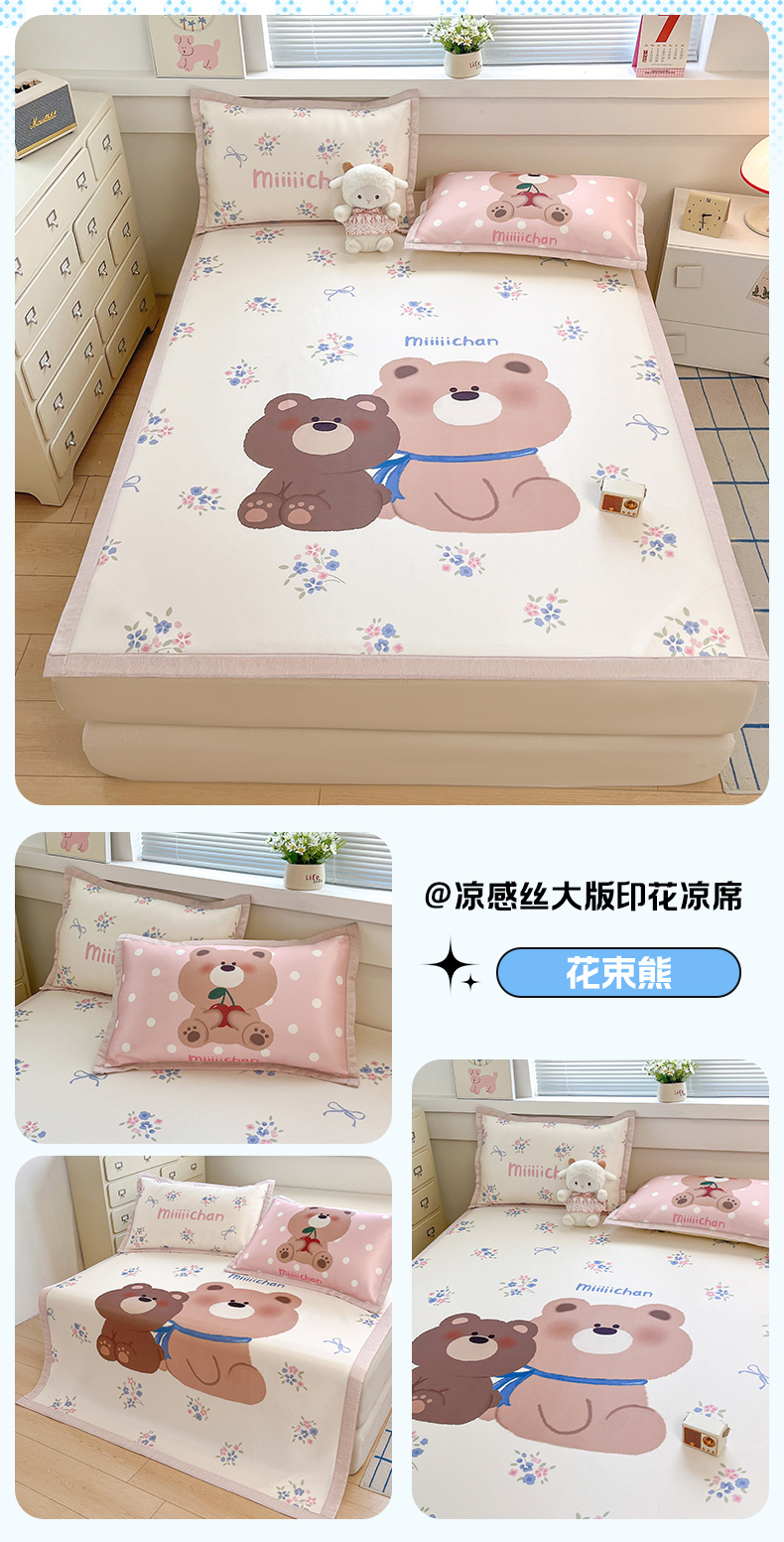 商品名称:博雅 2025新款miiiiichan正版权A类大版数码印花1200D冰丝凉席席子 点点泡芙狗