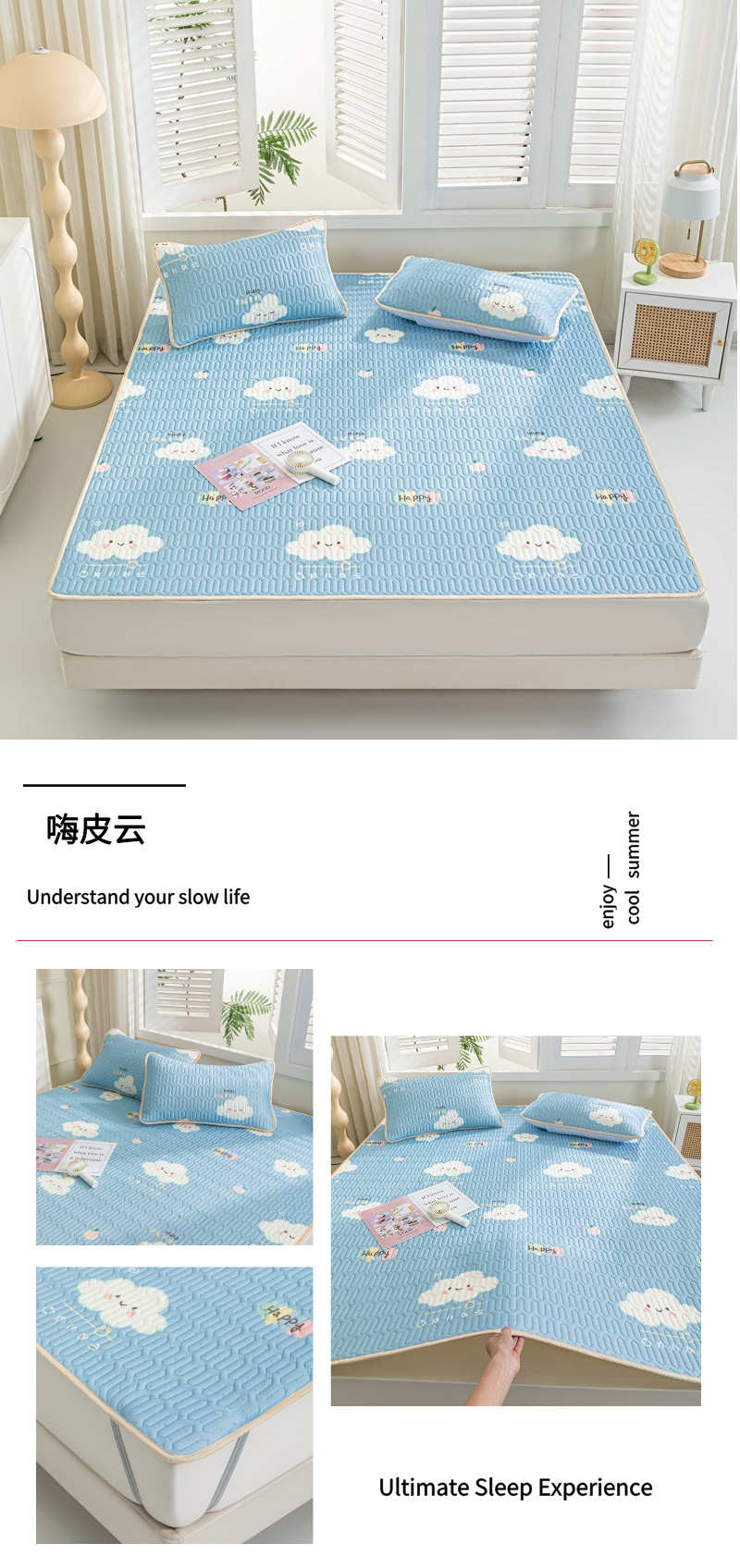 (总)羽梦家纺 2026新款硅胶床裙款凉席席子,深睡蓝,青空灰,柔云粉,淡蓝色,元气小熊,雾岛听花,雾粉花眠,雾里看花,云间花境