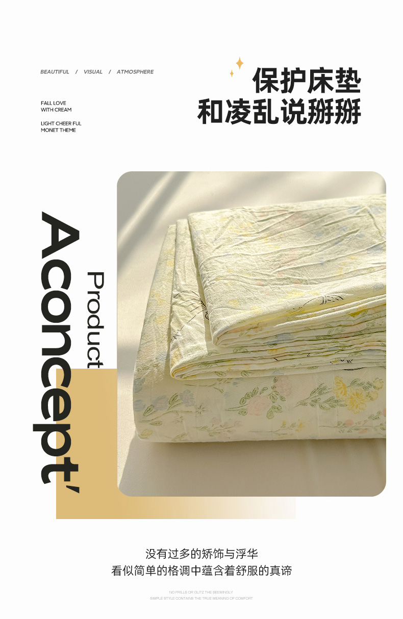 • 91家纺网 家纺一手货源 找家纺 眠帛家居 2025新款A类水洗皱皱纱印花床单 蔓蔓