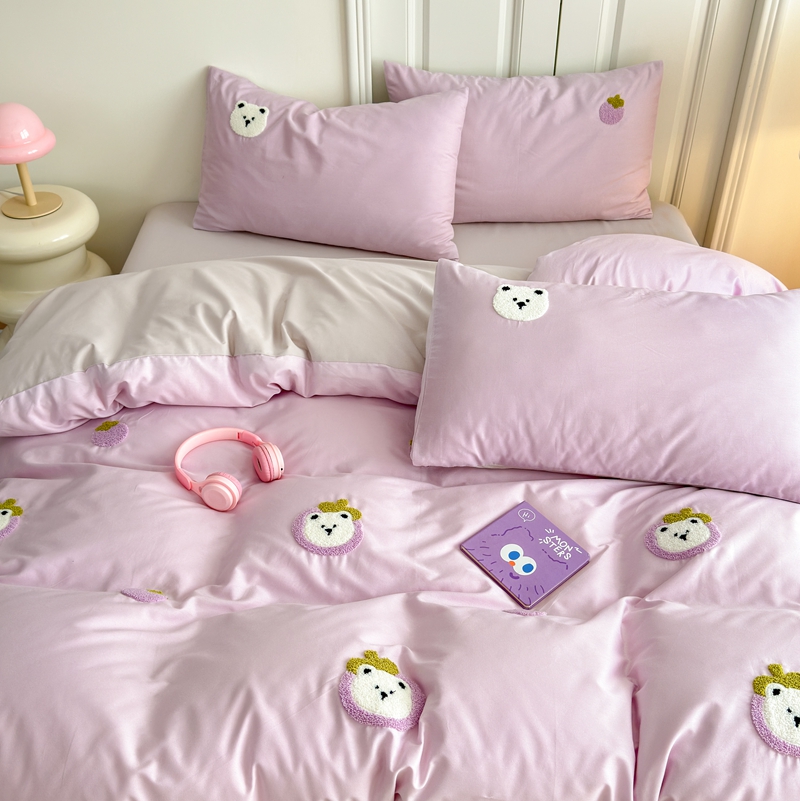 (总)锦觅 2025秋冬新款A类纯色小清新全棉磨毛绣花保暖四件套-第二批,可爱小兔,繁花似锦(米粉),可爱女孩(粉白)