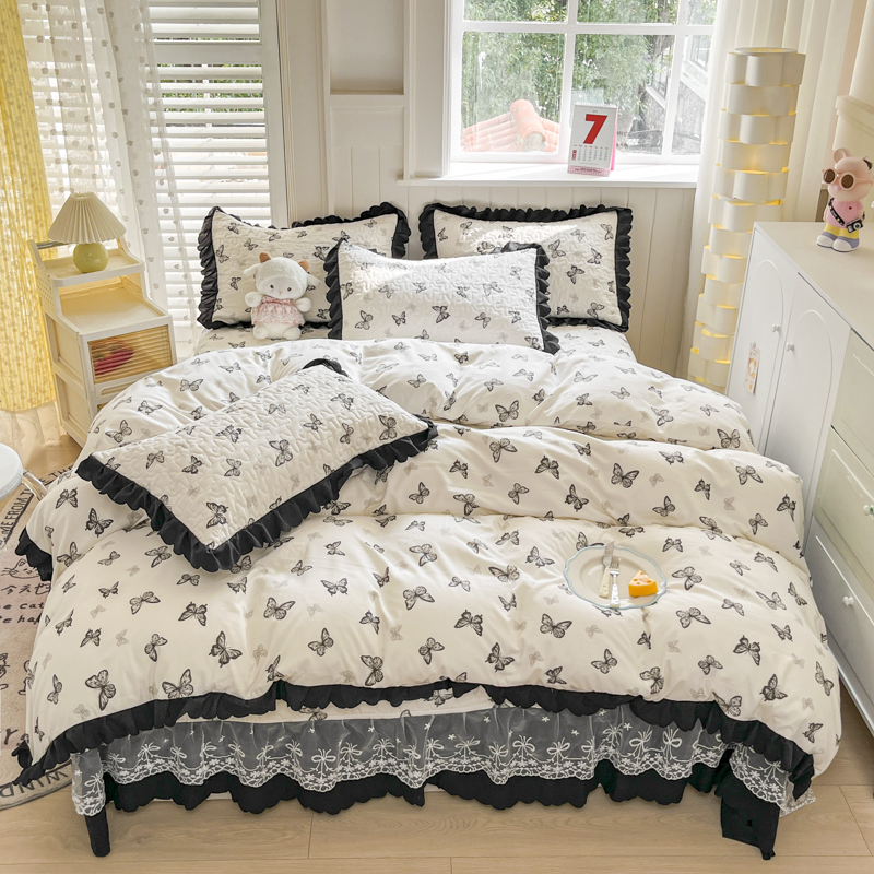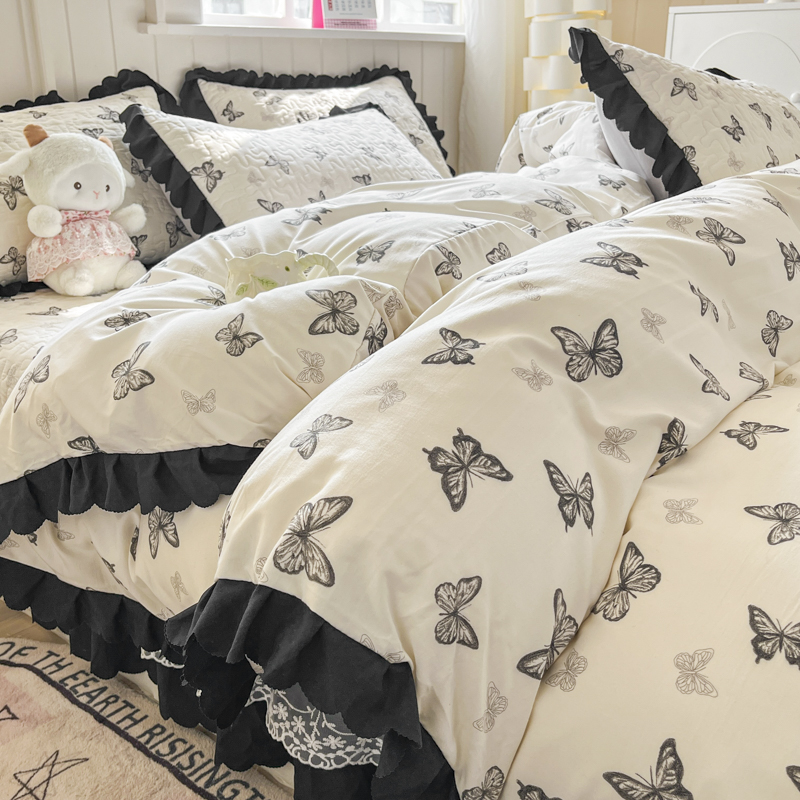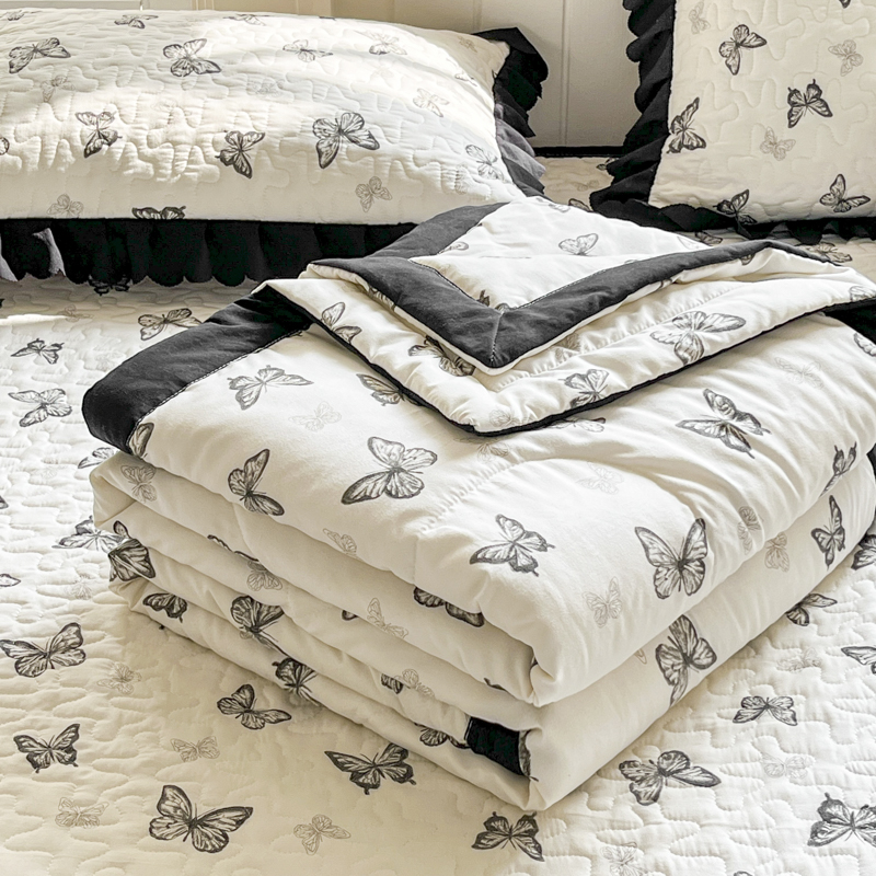 当前位置: 91家纺网 > 商品网购 > 床品套件 > 四件套 > 双层纱四件套 > 雅眠居 2025新款直播针织棉双层纱夏被床盖四件套空调夏凉被单件三件套 黑白蝴蝶