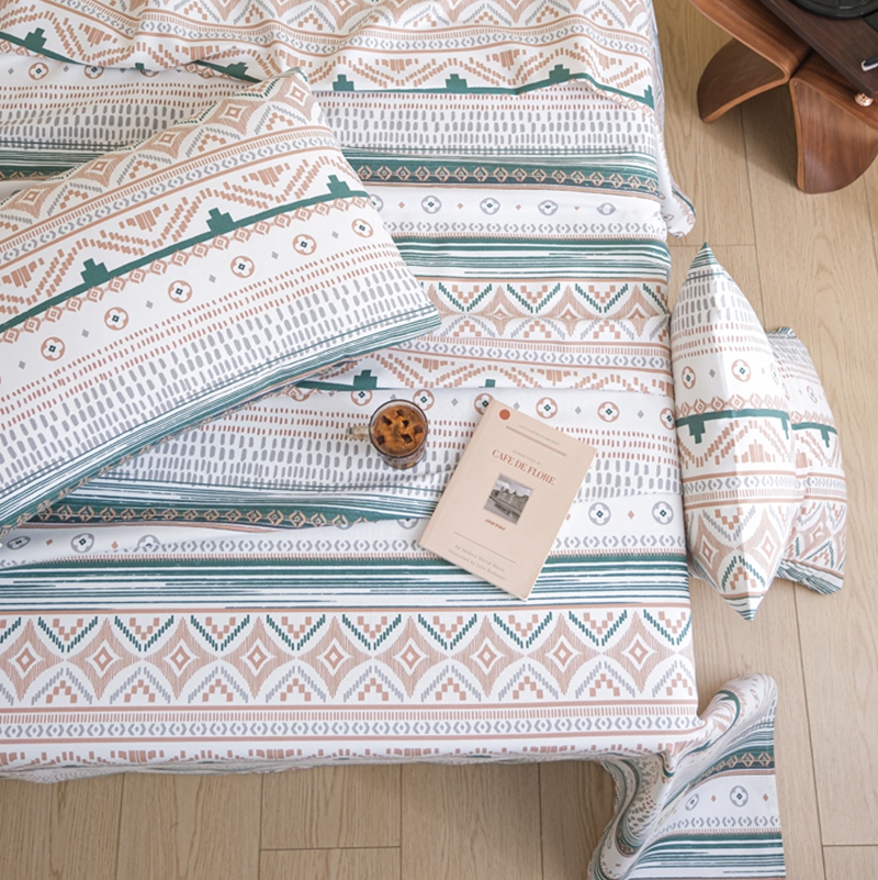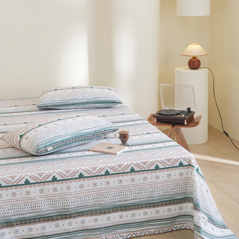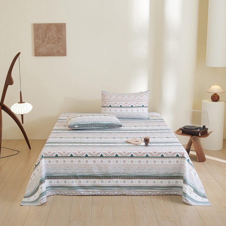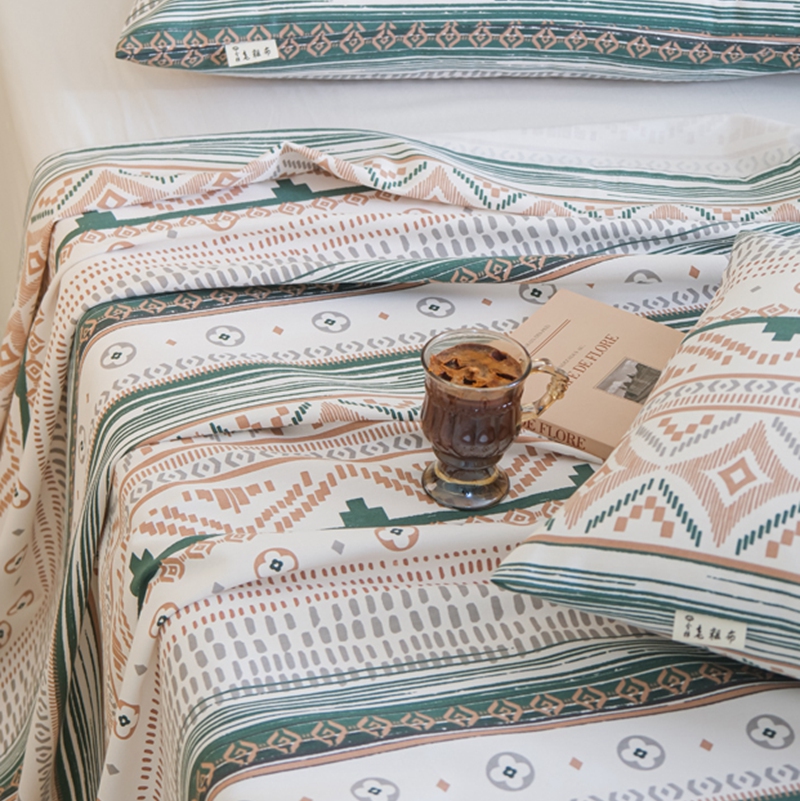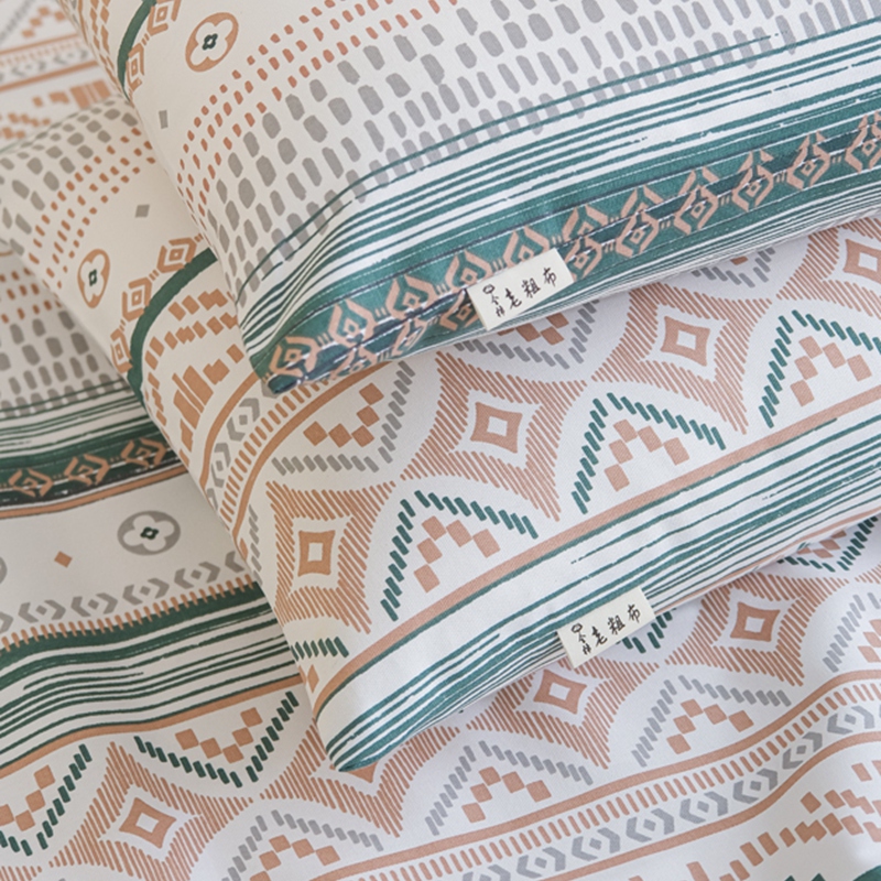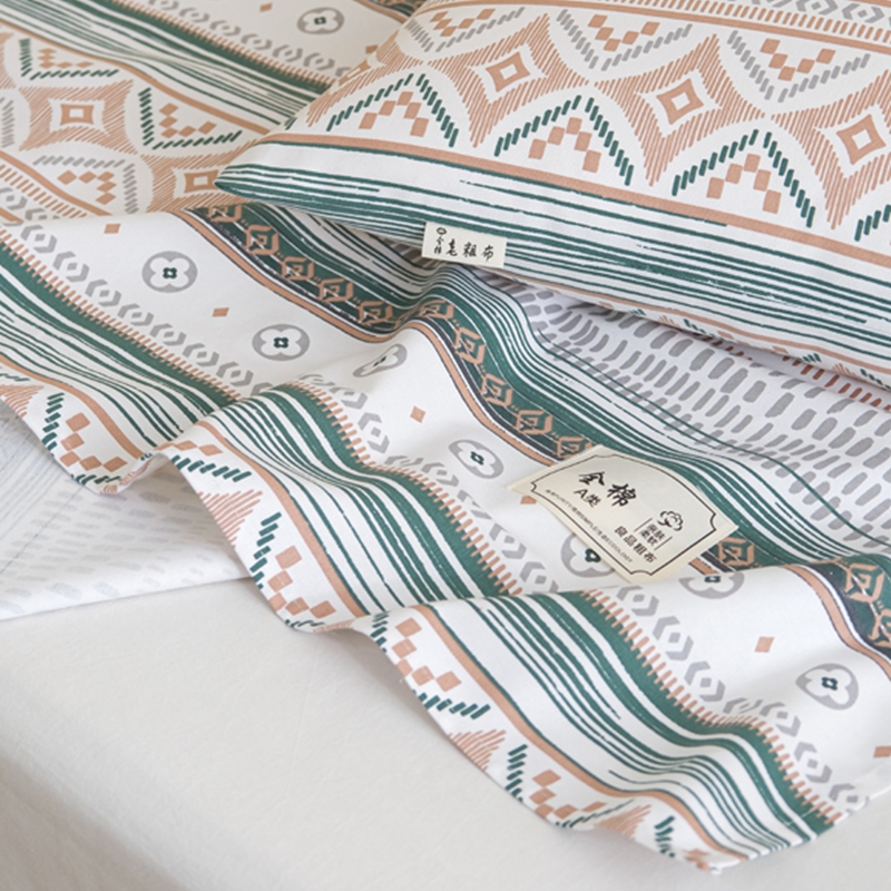 (总)萌宝老粗布2023纯棉印花老粗布床单凉席套件花边款三件套,摩登包包