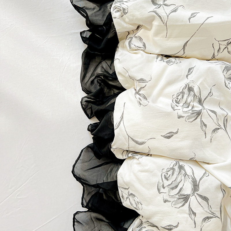 商品名称:艾橙 2025新款法式赫本风水洗棉印花雪纺花边单枕套 水墨玫瑰