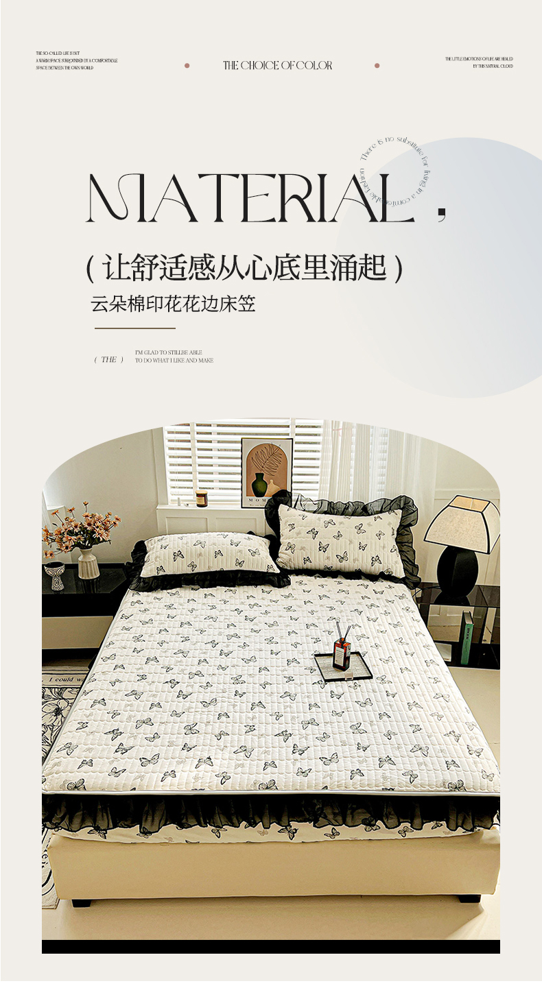 商品名称:(总)艾橙家纺2025新款法式赫本风水洗棉印花雪纺花边单床笠