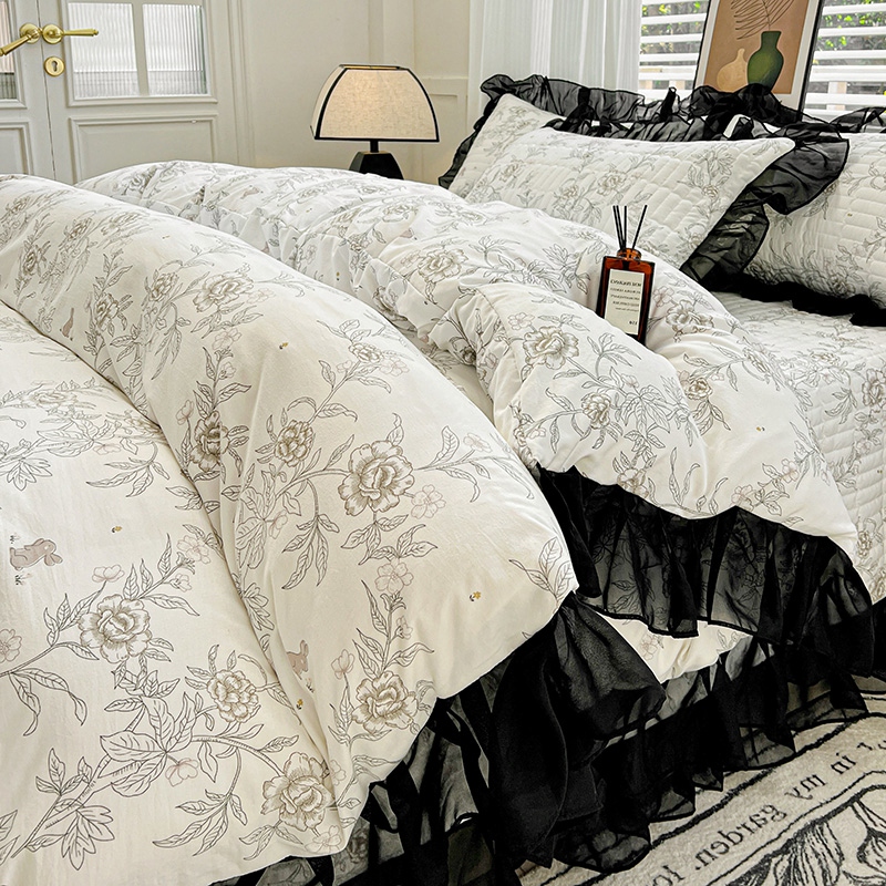 艾橙 2025新款法式赫本风水洗棉印花雪纺花边单被套 素馨花恋