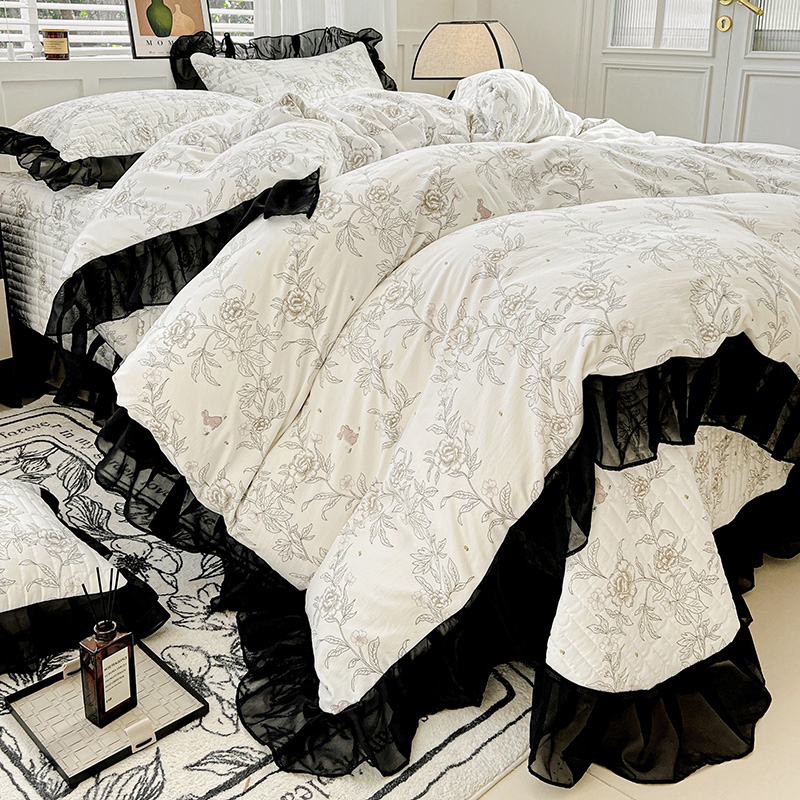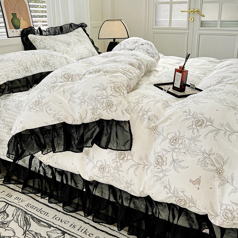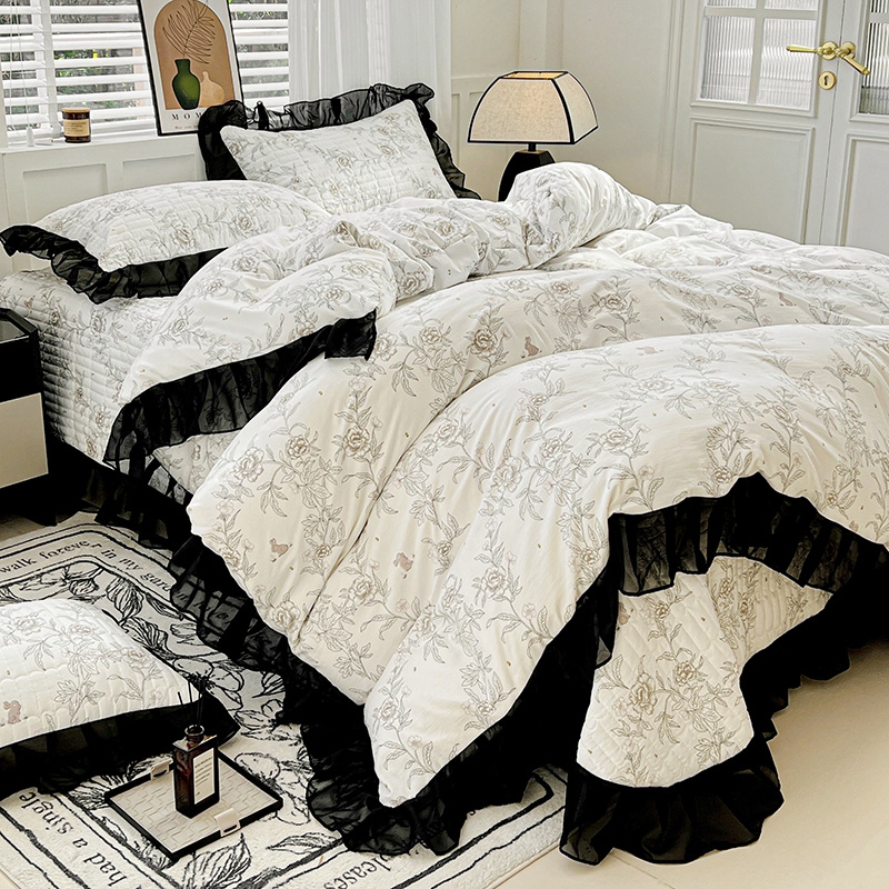 商品名称:艾橙 2025新款法式赫本风水洗棉印花雪纺花边单被套 素馨花恋