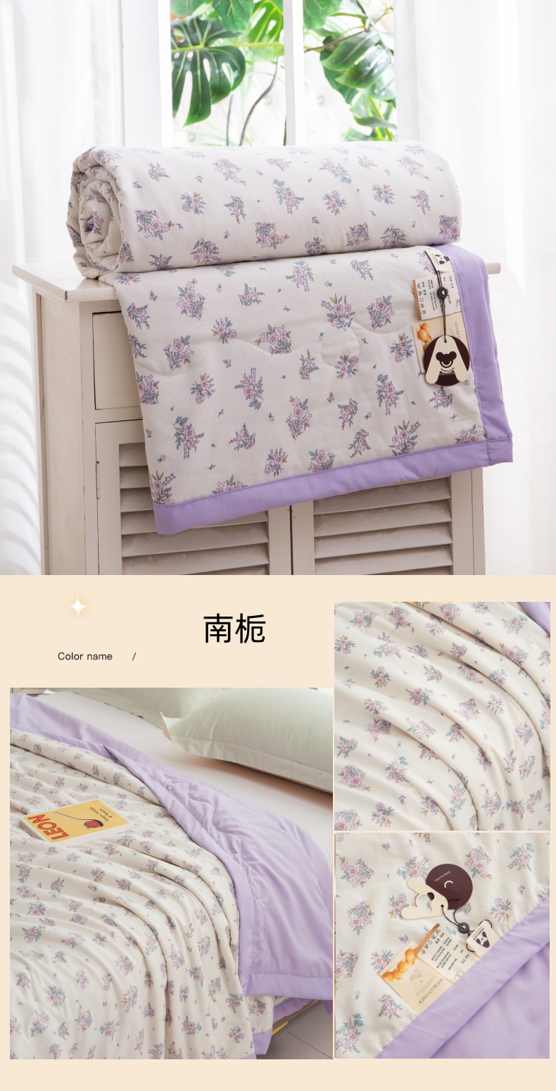 商品名称:博睿家纺 2025新款A类水洗双层纱皱皱纱大豆纤维被夏被夏凉被空调被 紫色花语