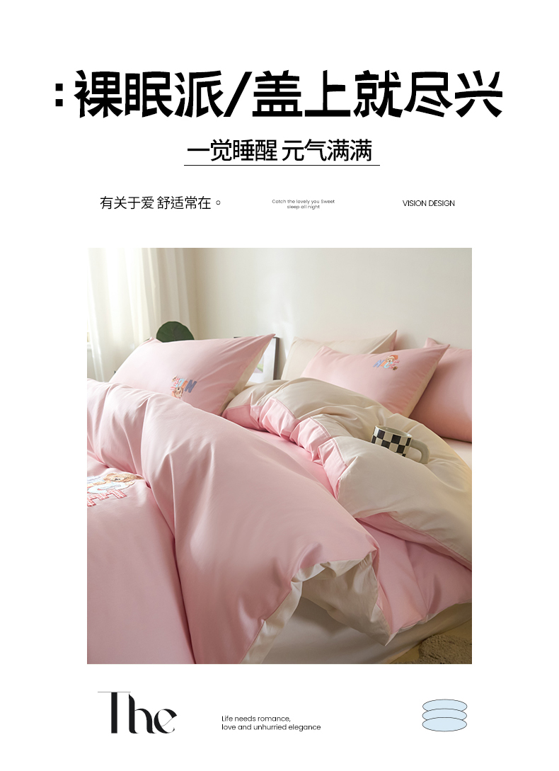 (总)拼社家纺 2025新款母婴及全棉水洗棉刺绣四件套纯棉床上用品,艾玛绿+卡其,繁星蓝+卡其,繁星蓝+玫瑰粉,红豆沙+雅灰,迷雾灰+玫瑰粉,蜜粉+雅灰,奶油白+卡其,奶油白+香橙,牛仔蓝+浅蓝,香橙+雅灰