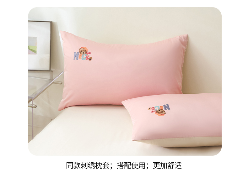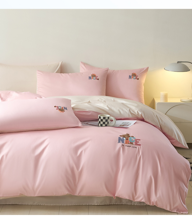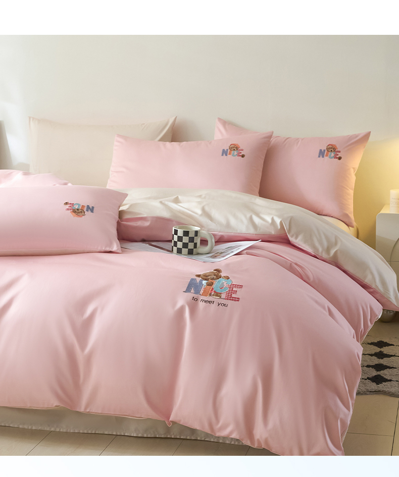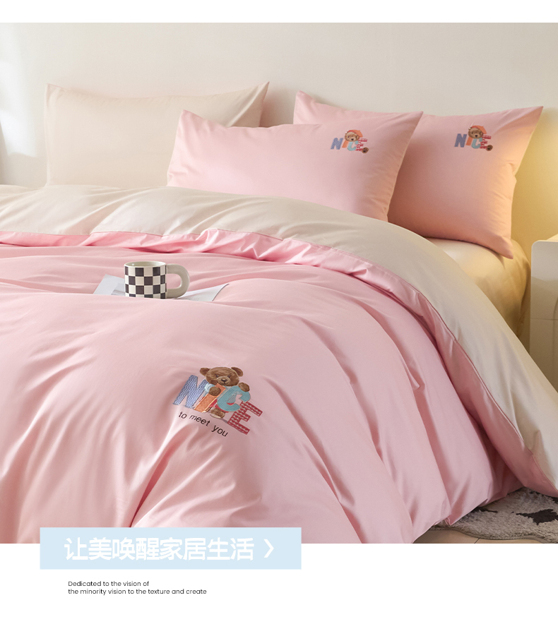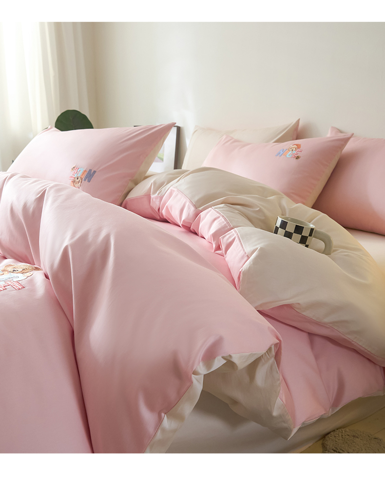 拼社家纺 2025新款全棉长绒棉四件套纯棉四件套小熊刺绣床上用品【提供买家秀】 萌萌熊-粉玉
