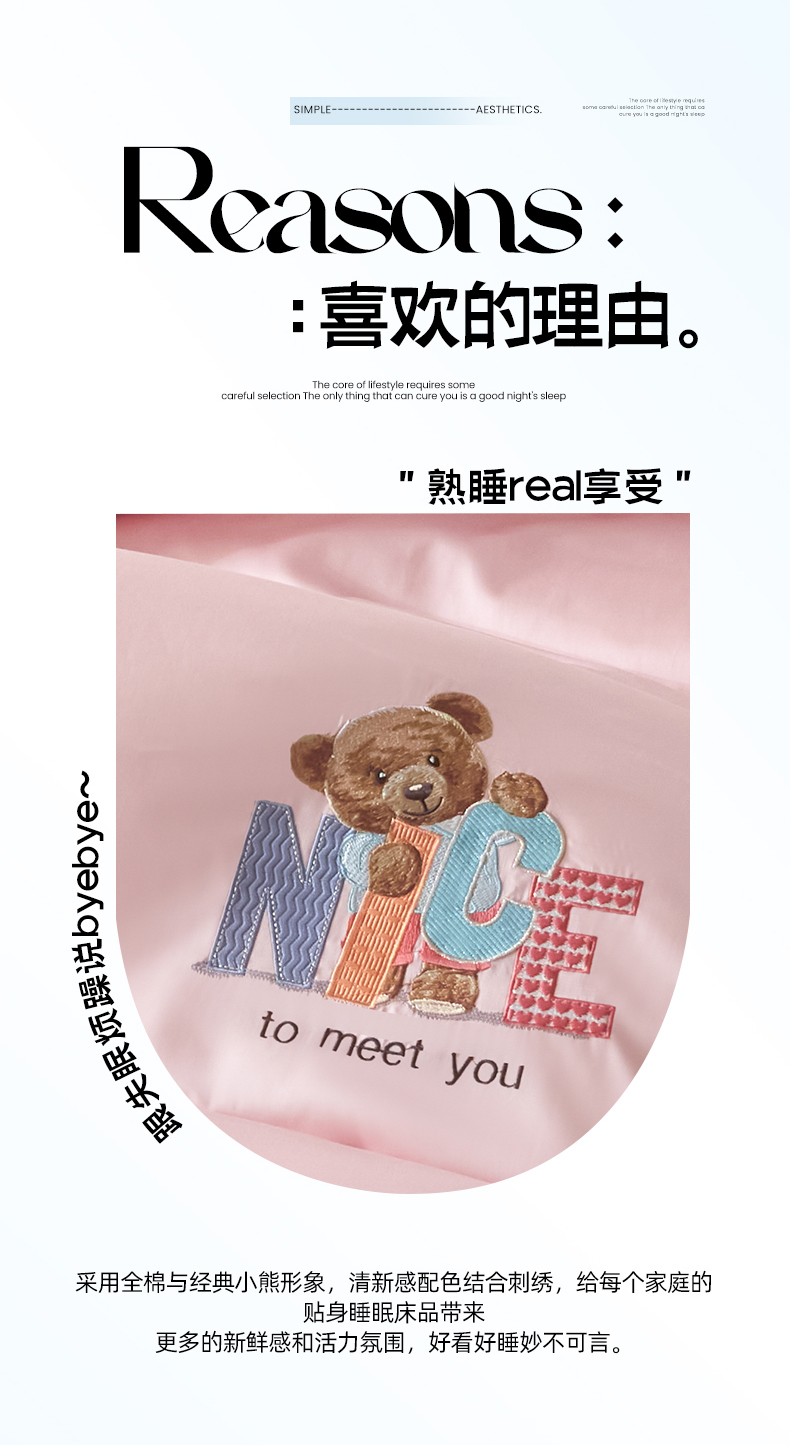 商品名称:拼社家纺 2025新款全棉长绒棉四件套纯棉四件套小熊刺绣床上用品【提供买家秀】 萌萌熊-粉玉