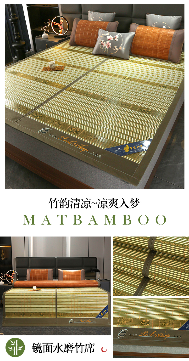 商品名称:森璐家纺 2025新款茶香养生竹席藤席草席冰丝席凉席子 熊猫绿-反面冰藤