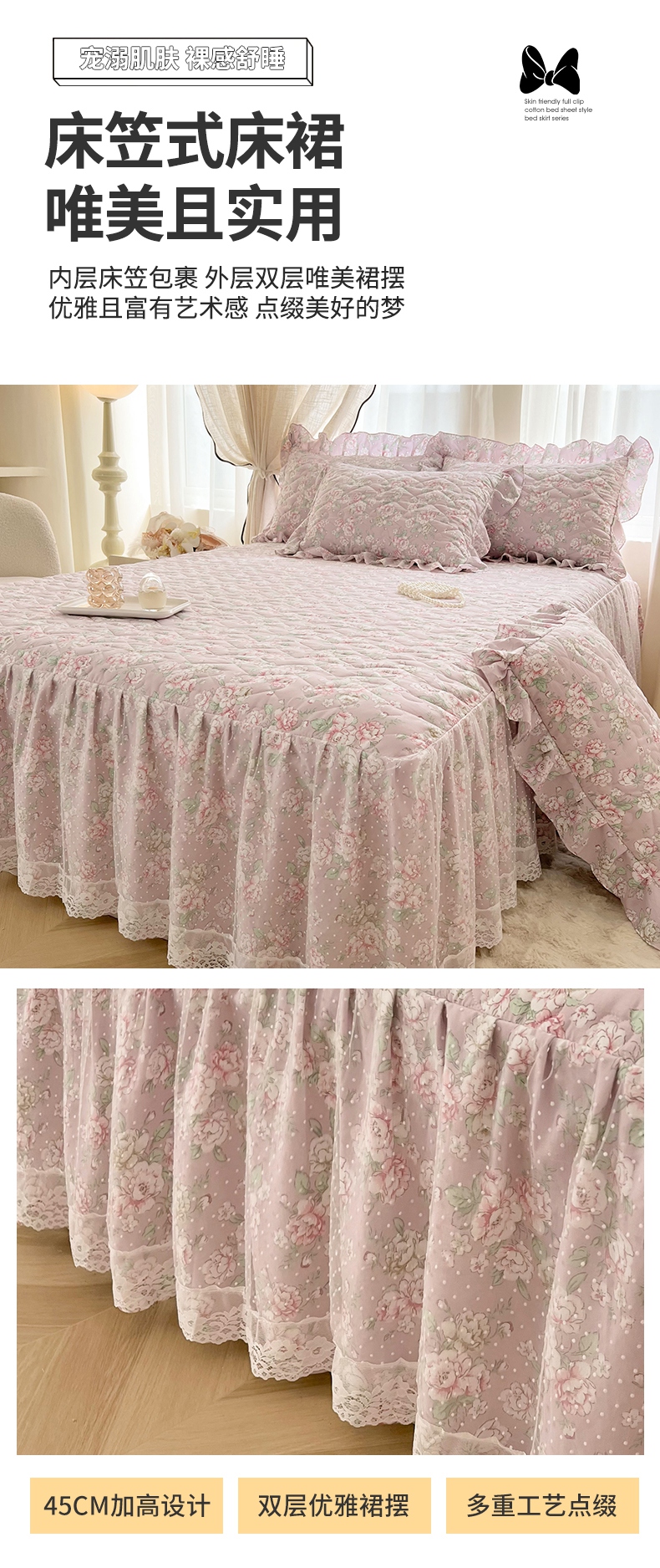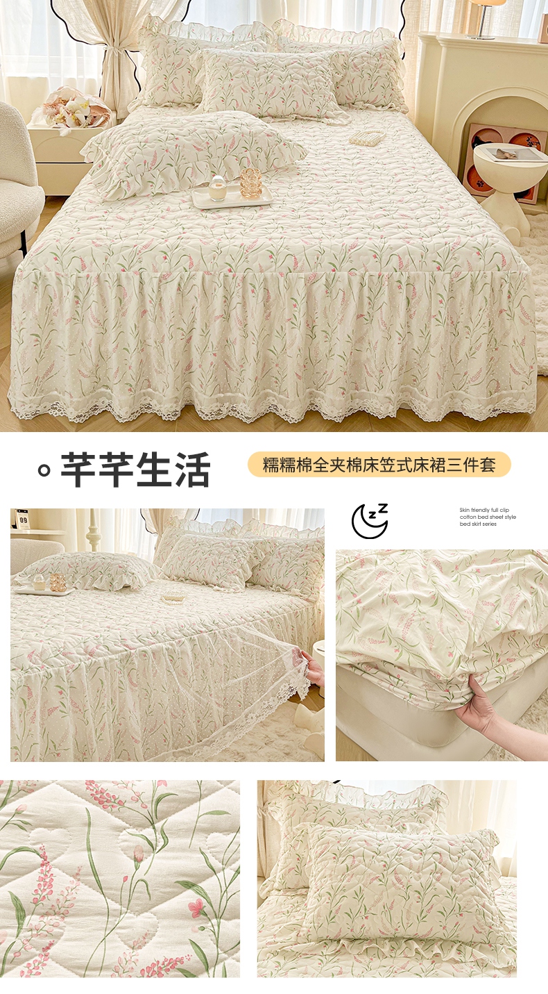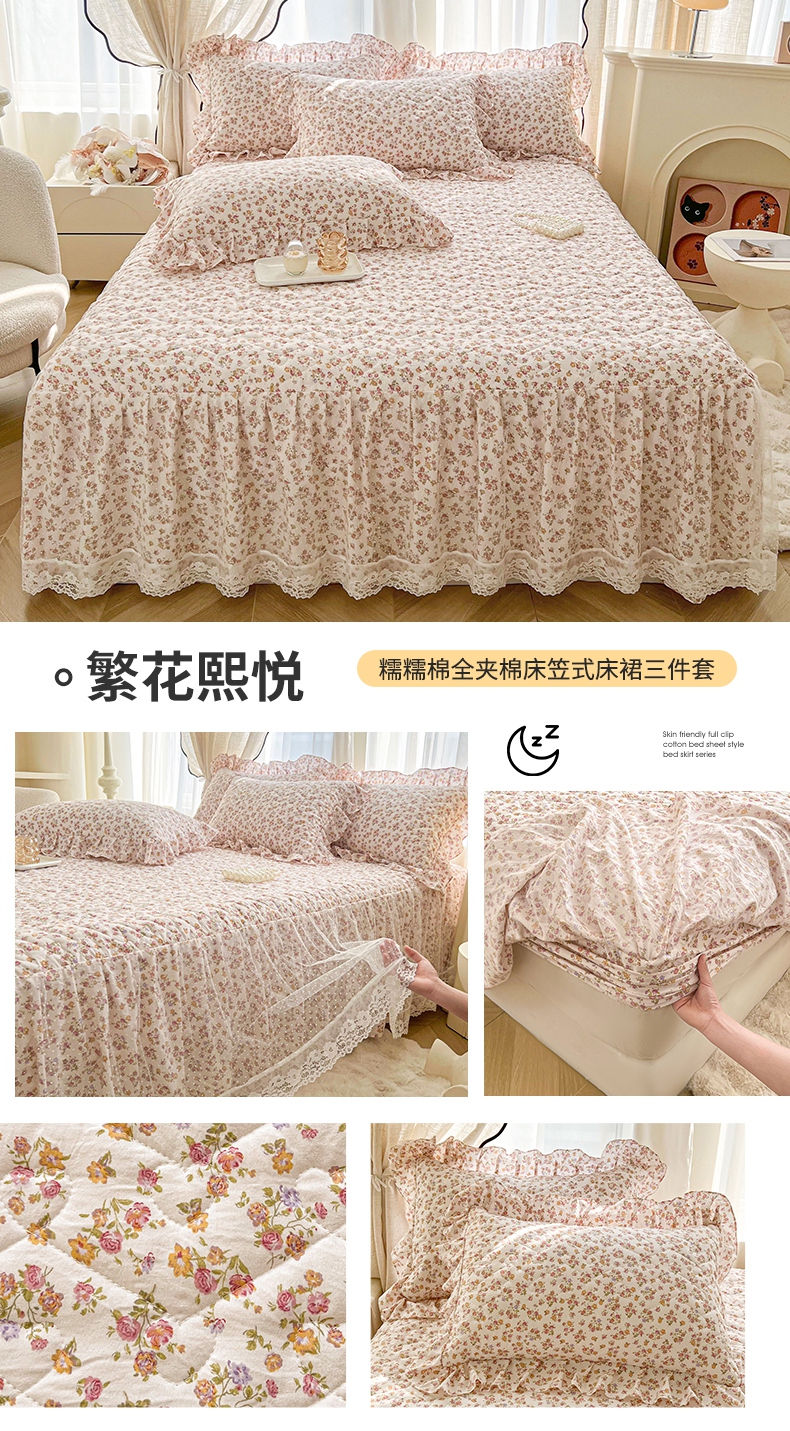 商品名称:(总)宜凡家纺 2025新款糯糯棉全夹棉床笠式床裙三件套