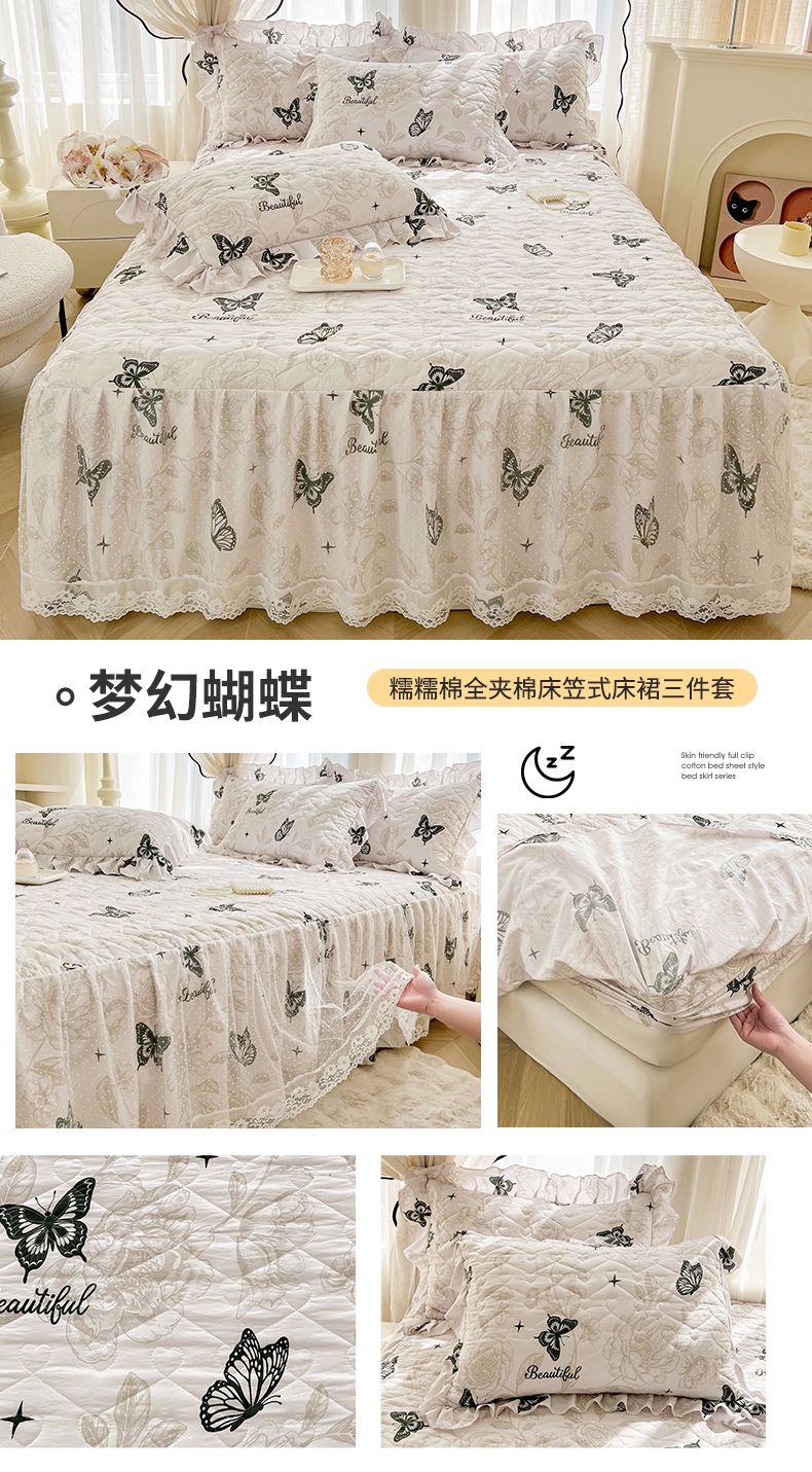 宜凡家纺 2025新款糯糯棉全夹棉床笠式床裙三件套 梦幻蝴蝶