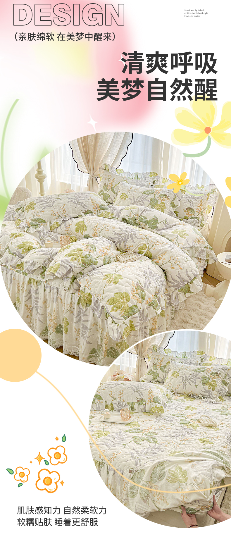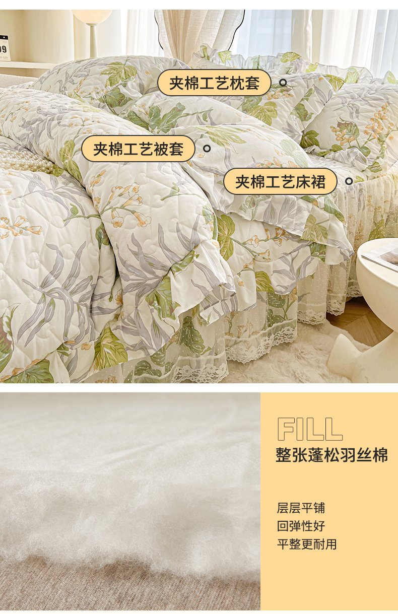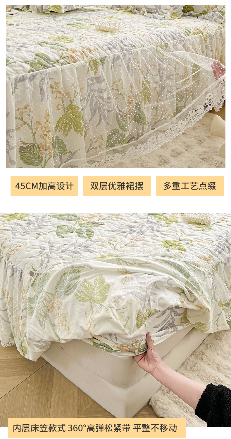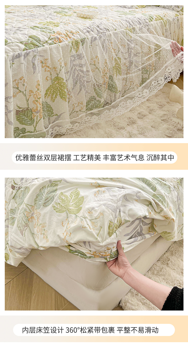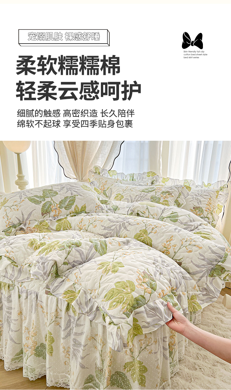 • 91家纺网 家纺一手货源 找家纺 宜凡家纺 2025新款糯糯棉全夹棉床笠式床裙四件套 温情初夏