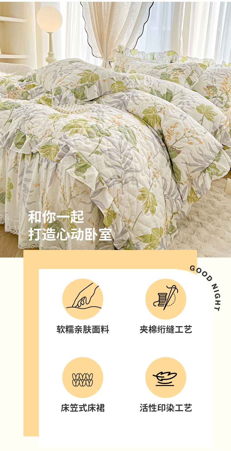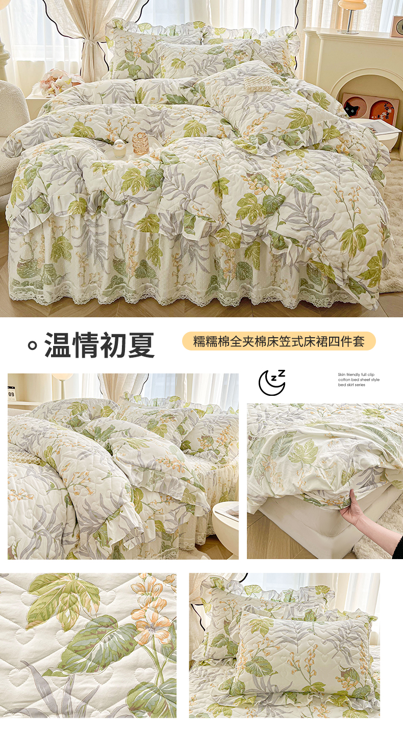 宜凡家纺 2025新款糯糯棉全夹棉床笠式床裙四件套 温情初夏