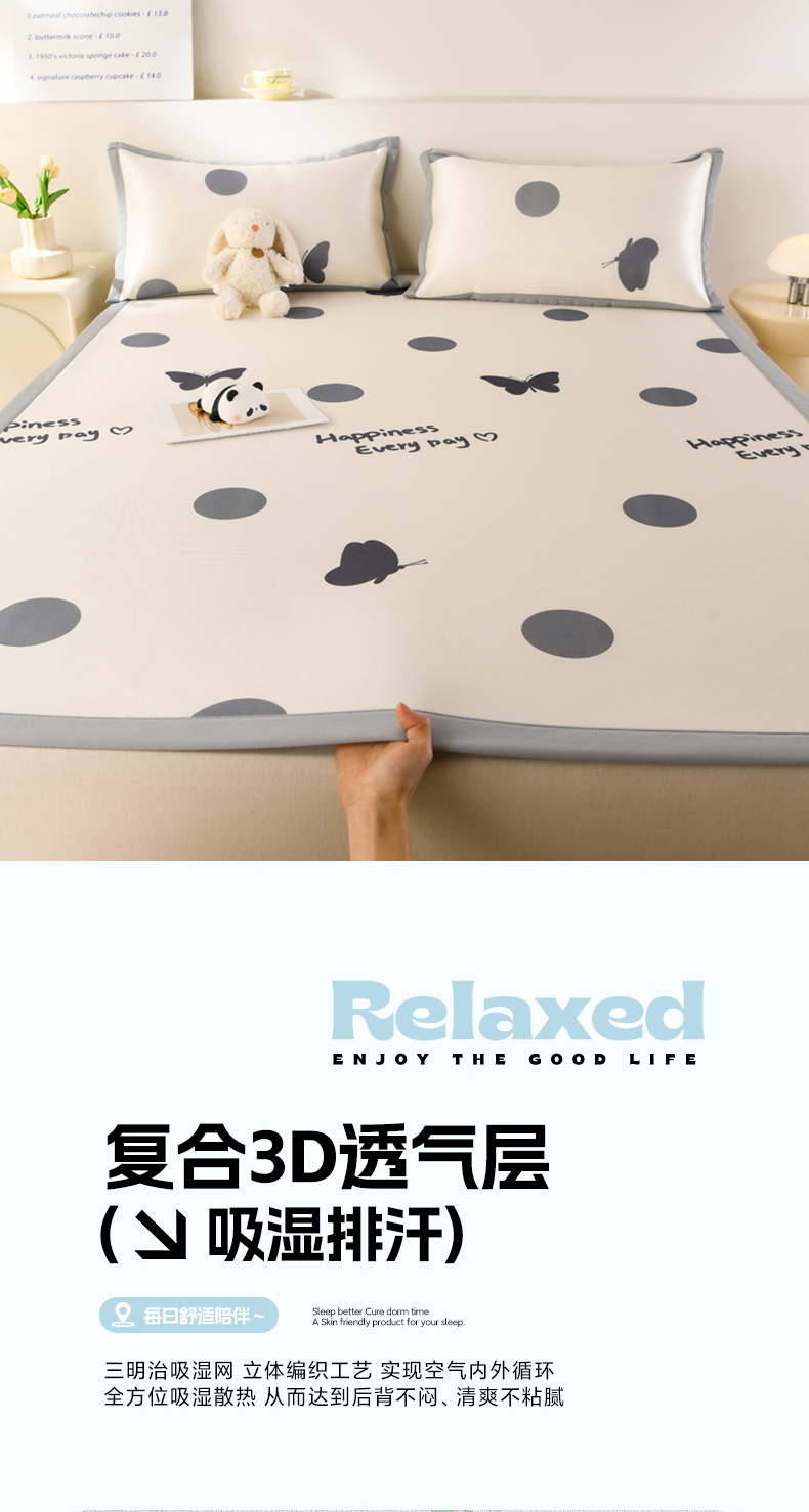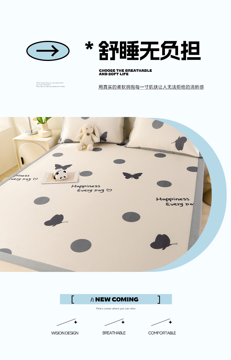 • 91家纺网 家纺一手货源 找家纺 牵依 2025春夏新款A类碳光冰丝席凉感印花三明治凉席 波点蝴蝶