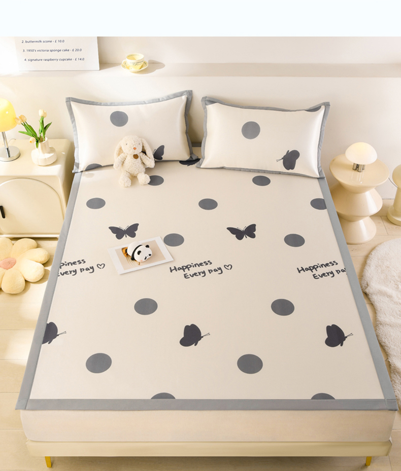 牵依 2025春夏新款A类碳光冰丝席凉感印花三明治凉席 波点蝴蝶