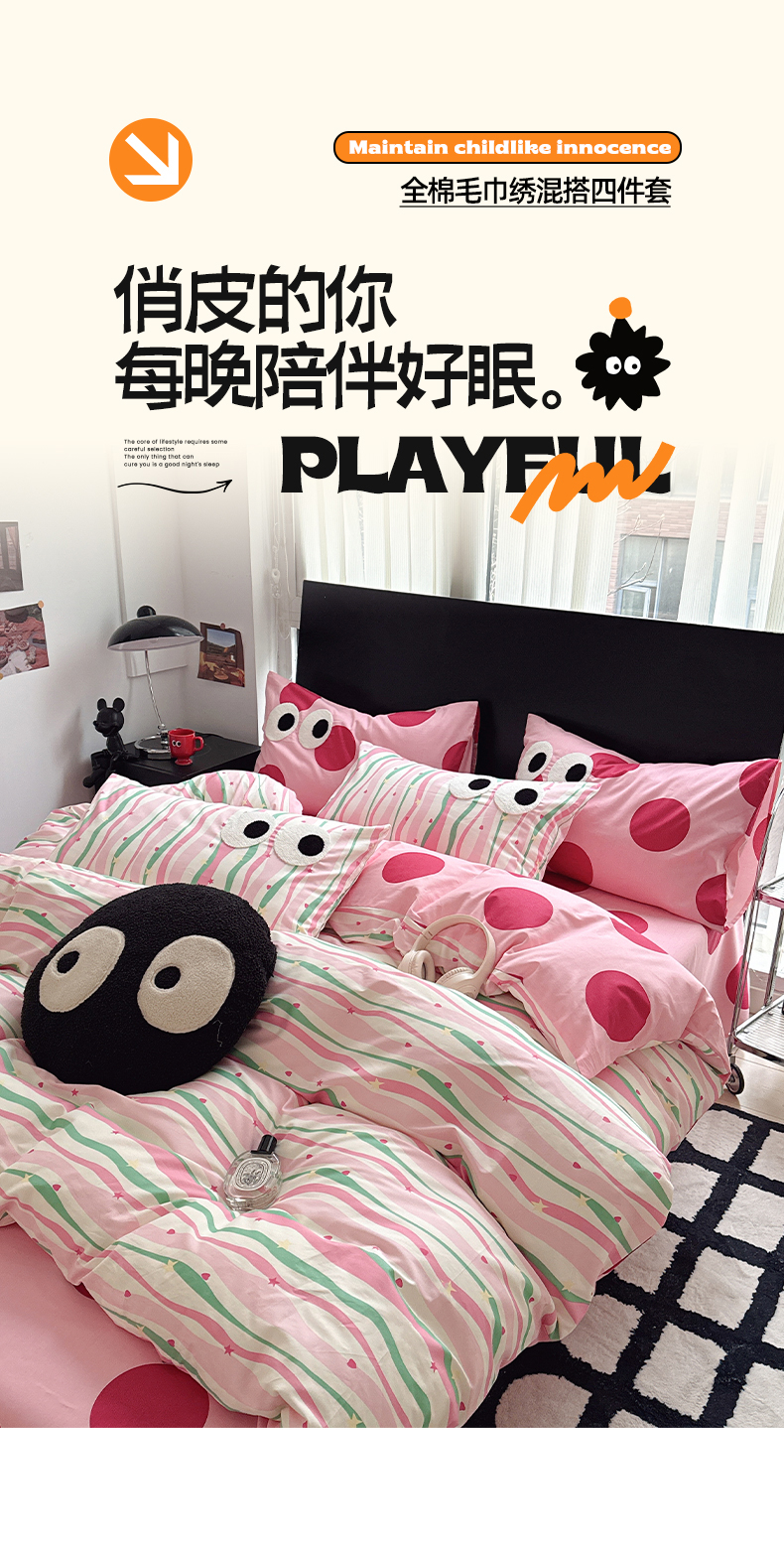 商品名称:吉象 2025新款大眼睛毛巾绣四件套 大眼睛-满天星