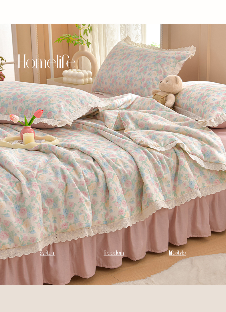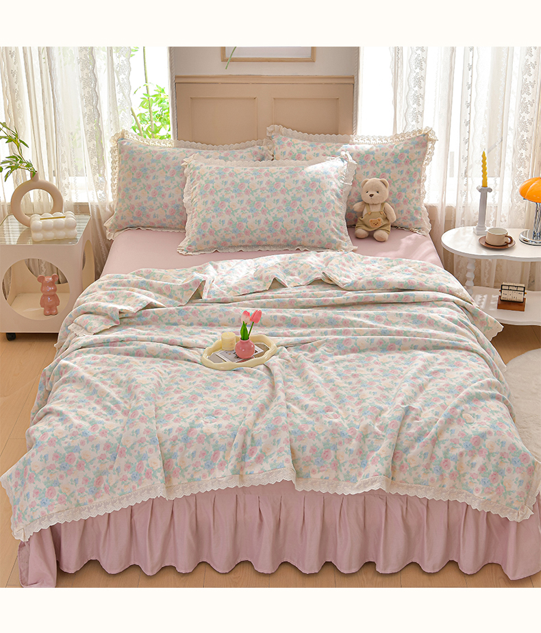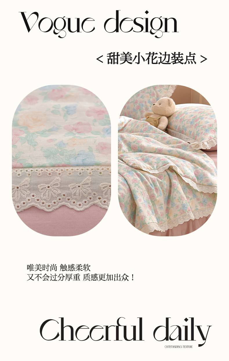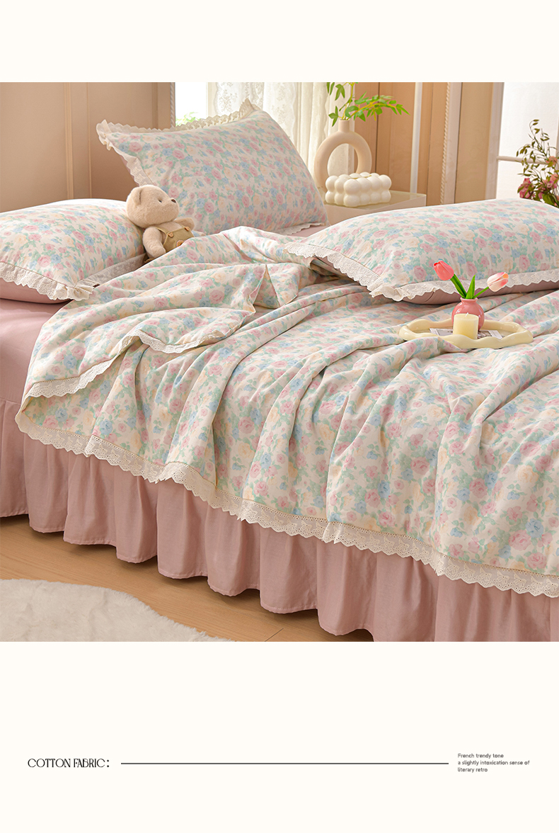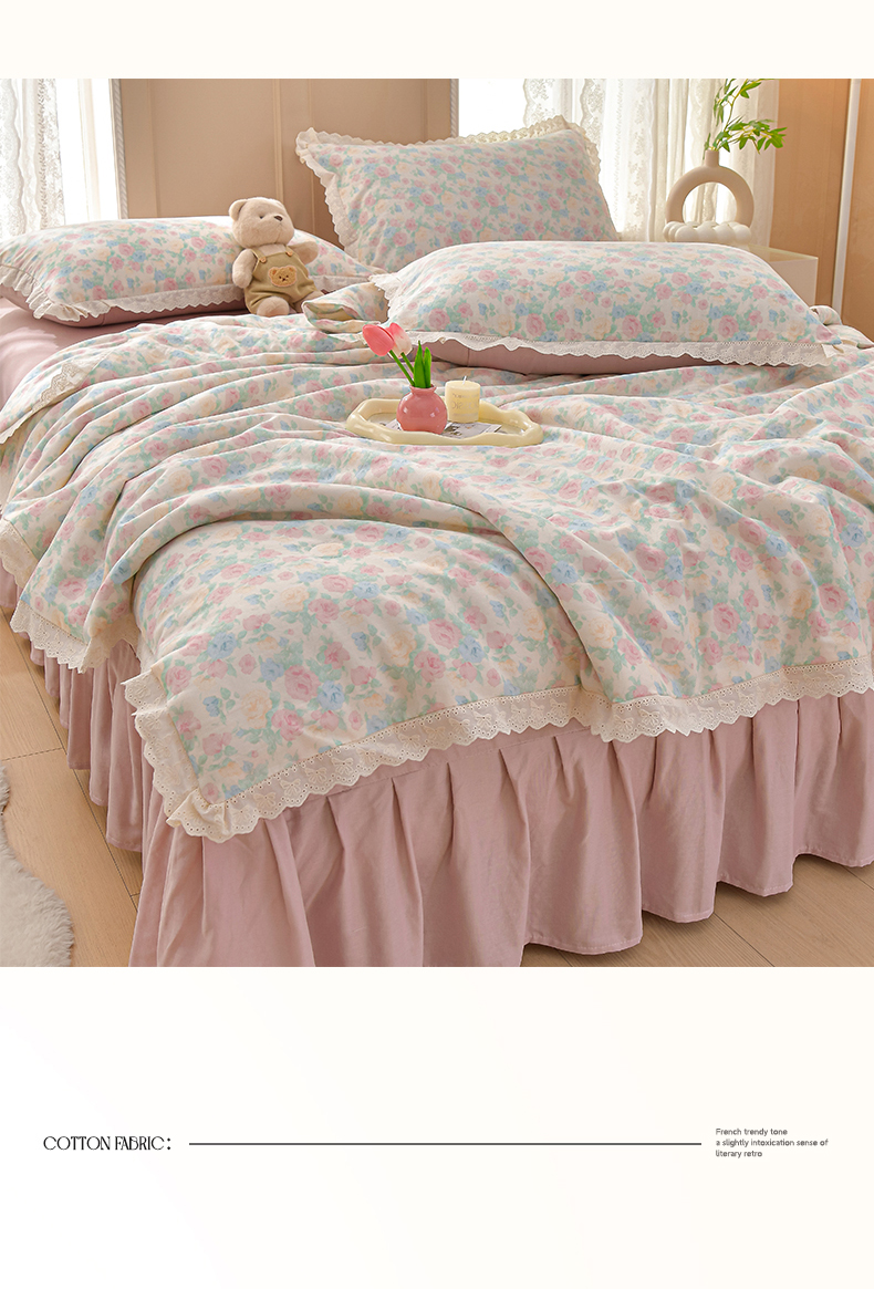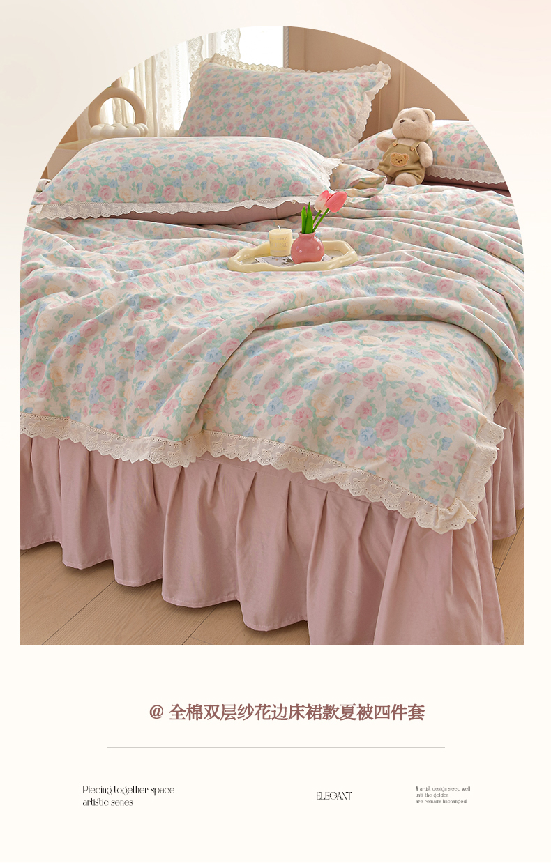 绘萱家居 2025新款100%全棉双层纱花边床裙款夏被四件套 佩洛斯