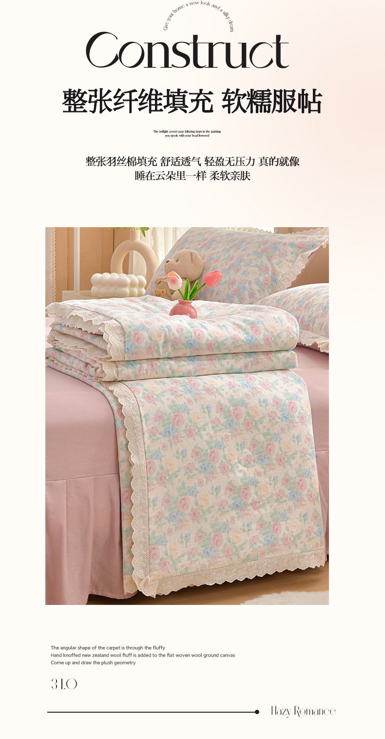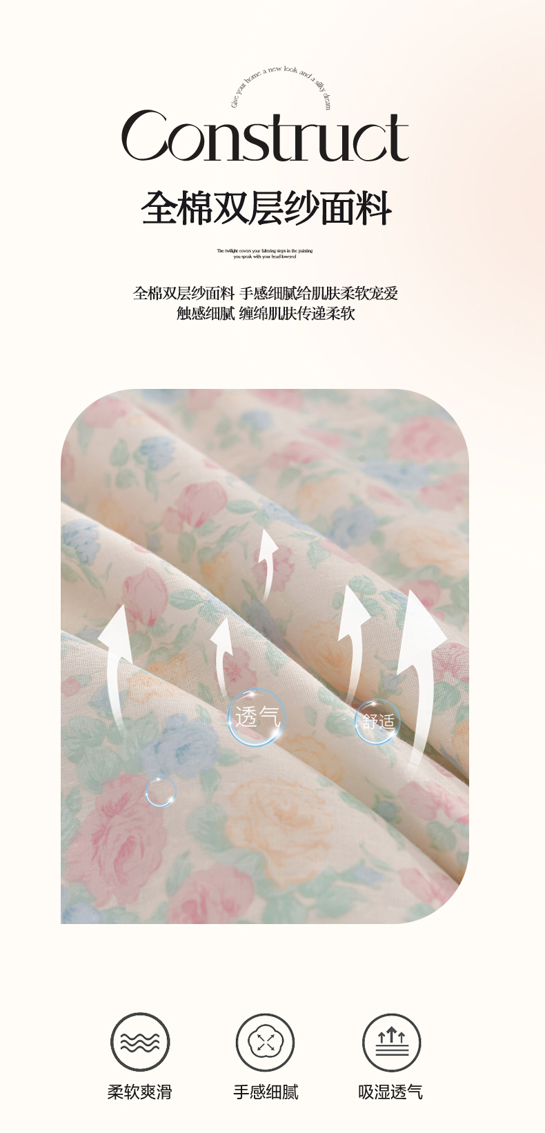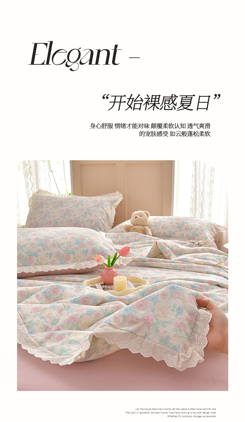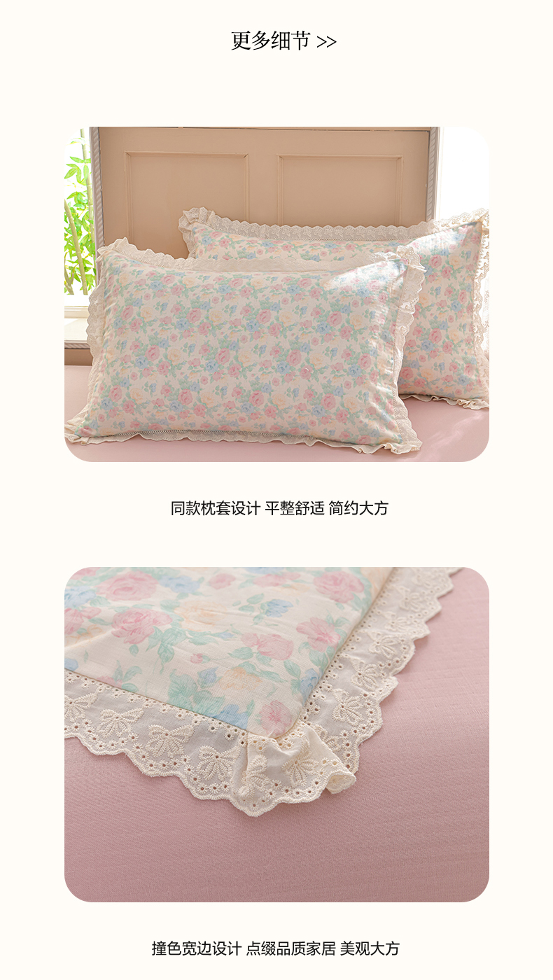 绘萱家居 2025新款100%全棉双层纱花边床裙款夏被四件套 佩洛斯