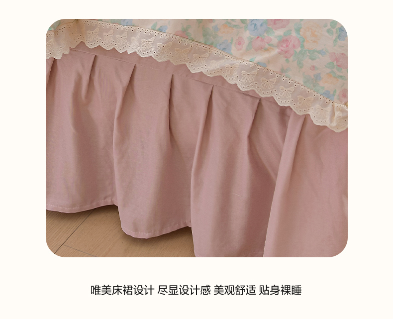 商品名称:绘萱家居 2025新款100%全棉双层纱花边床裙款夏被四件套 佩洛斯